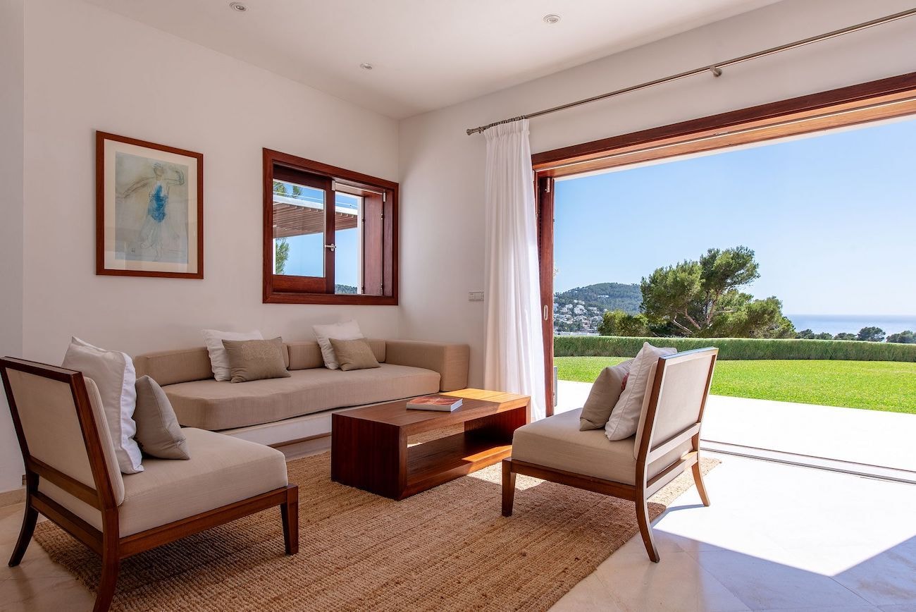 Six bedrooms, two separate apartments, and endless sea views define this family-focused villa above Cala Vadella. Privacy meets playfulness on 40,000 sqm of land.