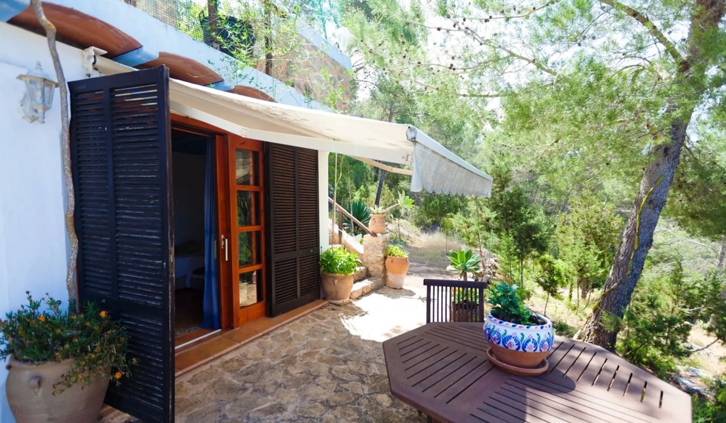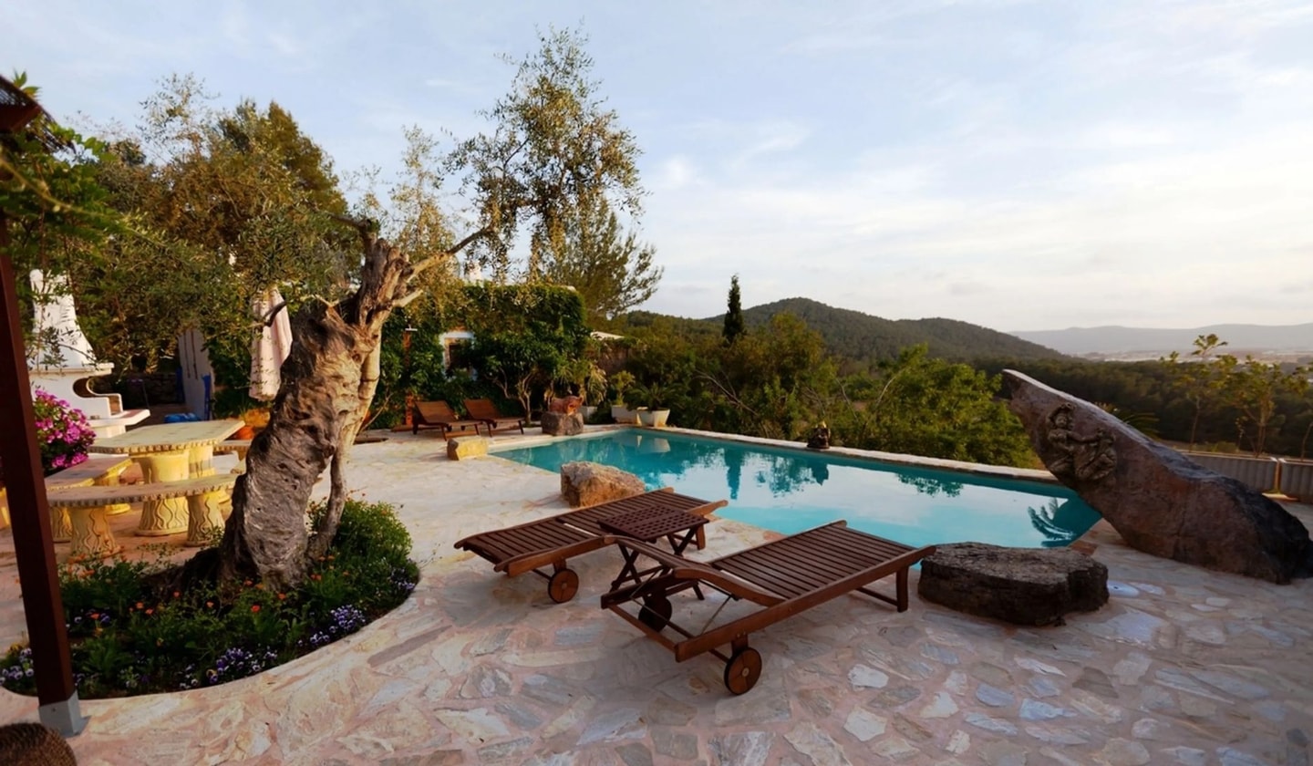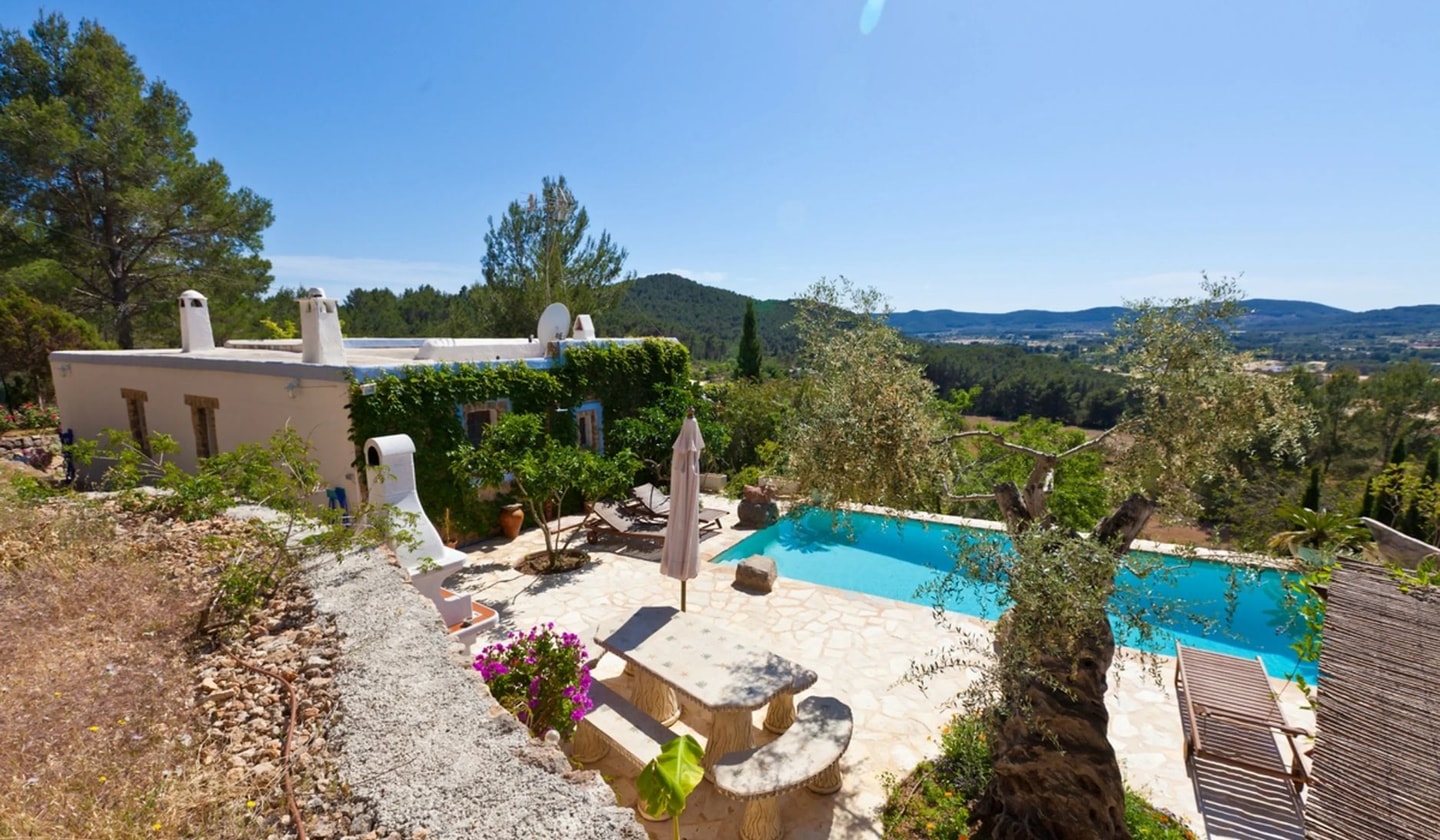 An authentic stone villa in northern Ibiza's untouched landscape, with valley views and a pool terrace. Just 4.5km from Benirràs beach.