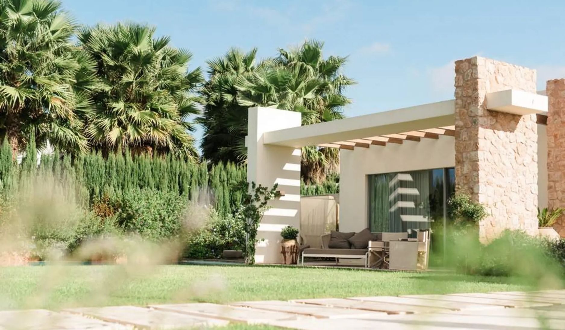 Can Jaime sits above Cala Conta's coastline, where six bedrooms frame some of Ibiza's most striking ocean views. This modern villa catches the Mediterranean light through floor-to-ceiling windows, while mature trees shade the 18-metre pool below. From here, the beach clubs of Cala Bassa lie just minutes away.