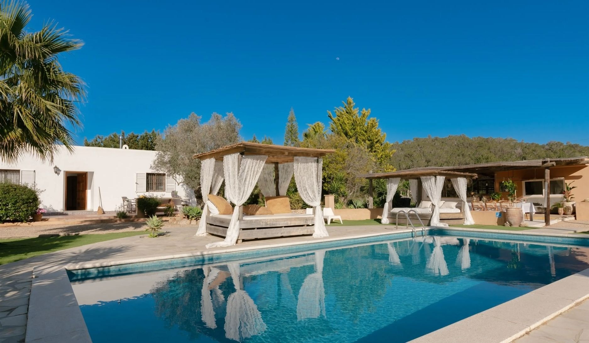 A comfortable cottage home tucked away in the peaceful north of Ibiza, where fruit trees line the path and children roam freely across three hectares of lawn. Natural materials and thoughtful family amenities make this a relaxed base for exploring the isl