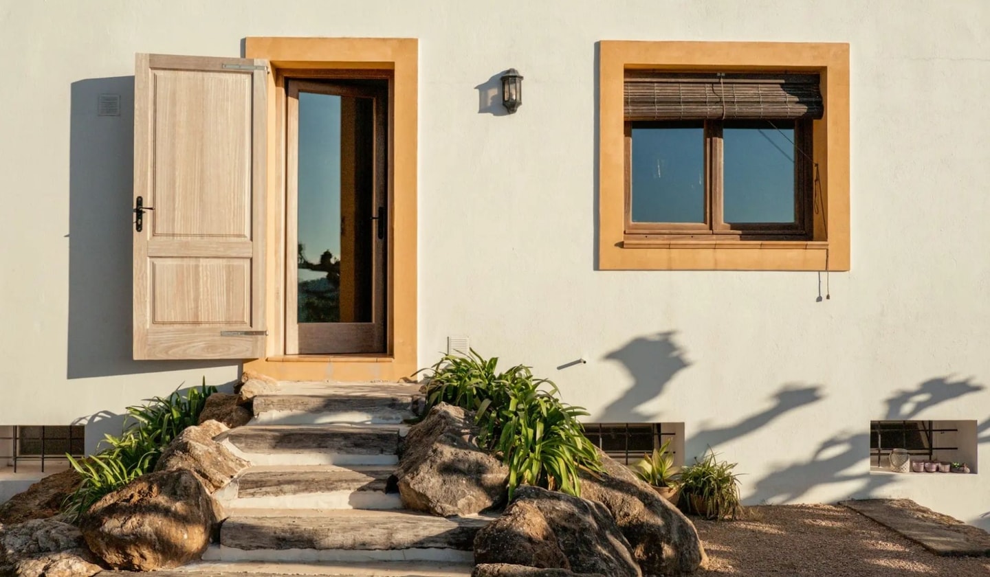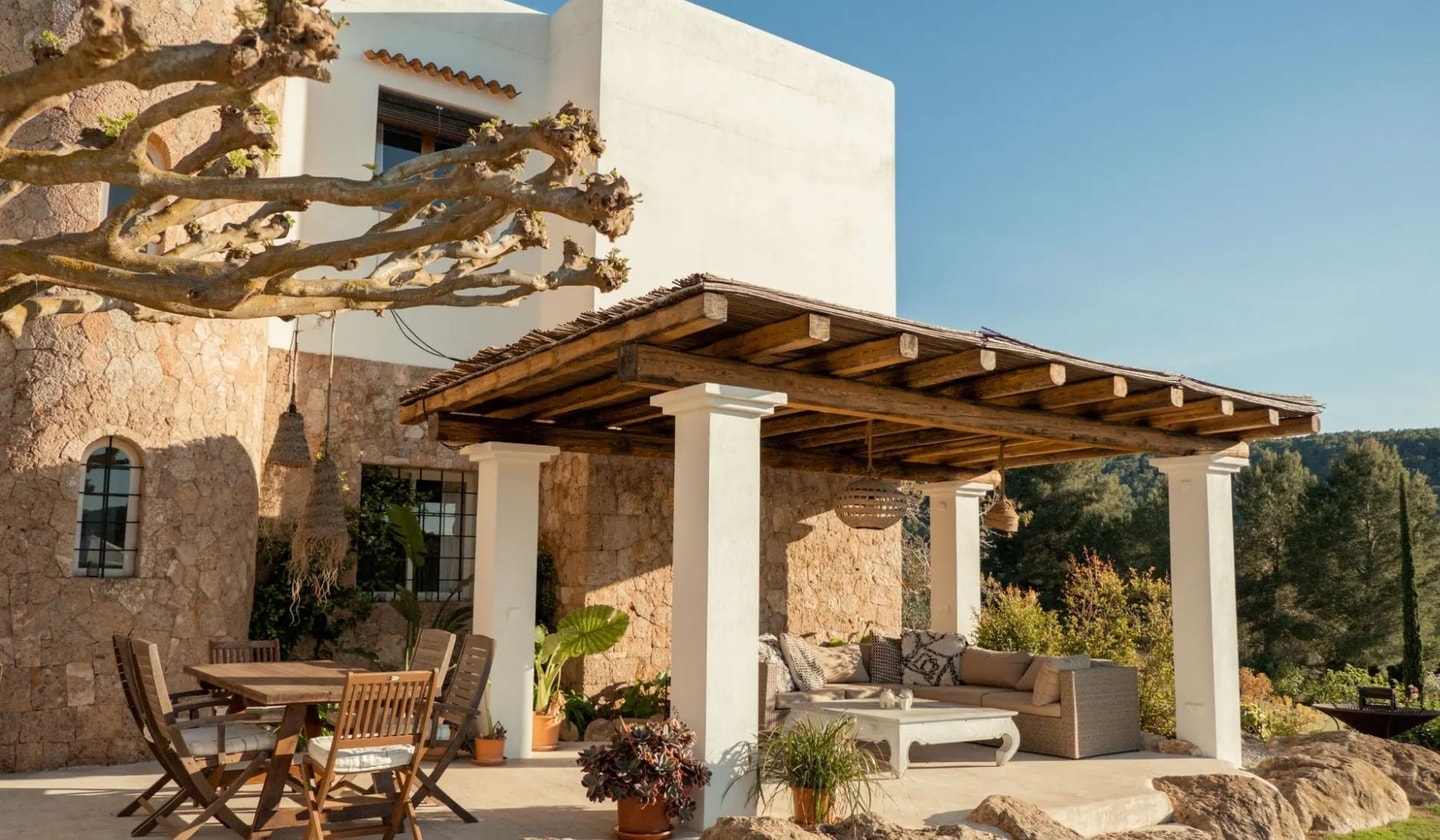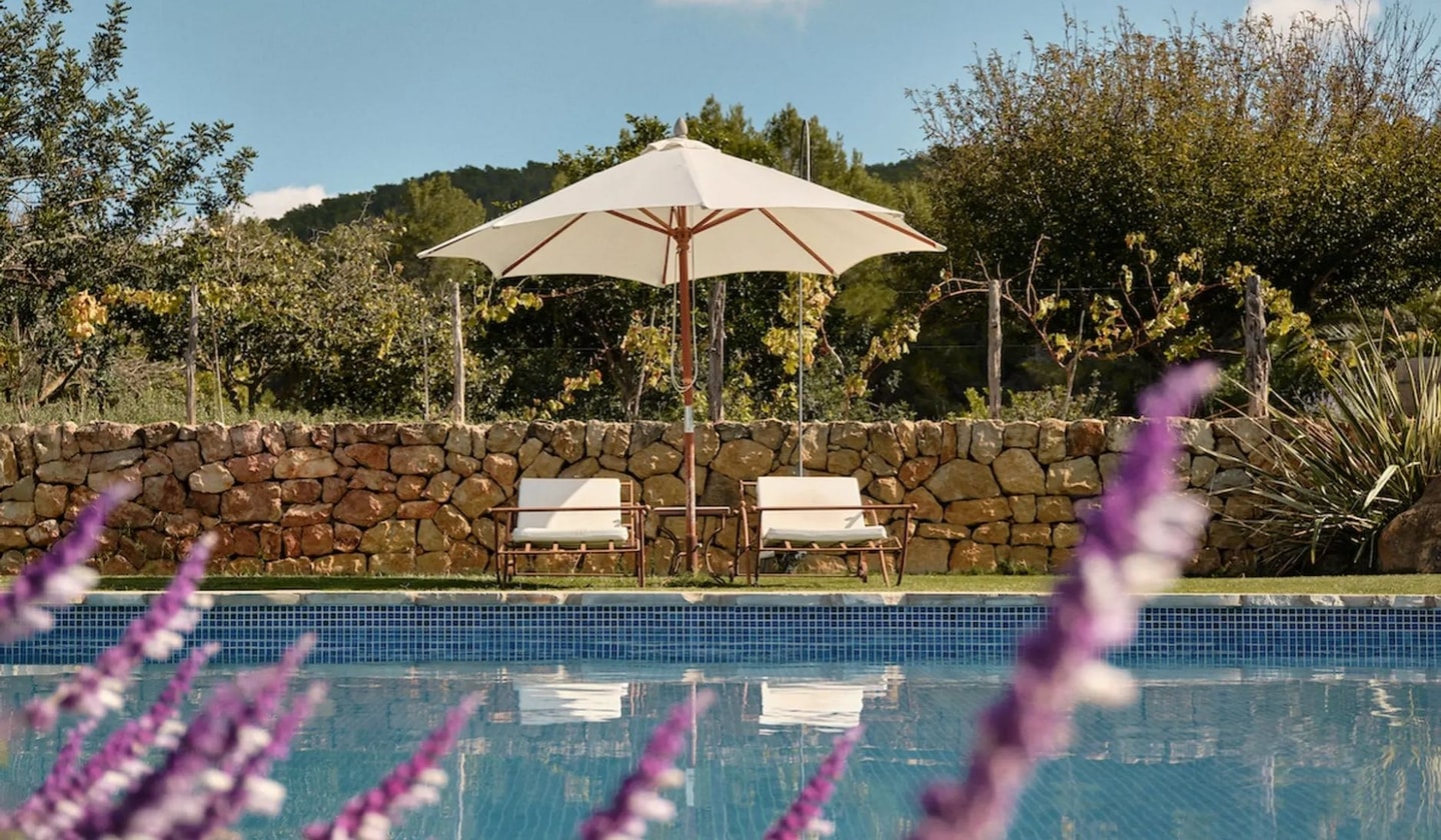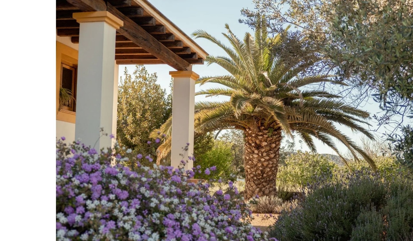 Between Santa Gertrudis and Sant Mateu, this five-bedroom finca sits amongst fruit fields and olive groves. Traditional Spanish character meets modern comfort in the Ibizan countryside.