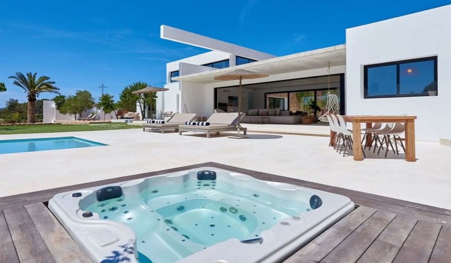 Eight bedrooms spread across 17,700 square metres of private land, just outside San Juan. This modern villa sits on a working farm, complete with fruit orchards, centenary olive trees and a restored water wheel that hints at the property's agricultural past. The northern beaches of Benirràs and its famous sunsets are fifteen minutes away by car.