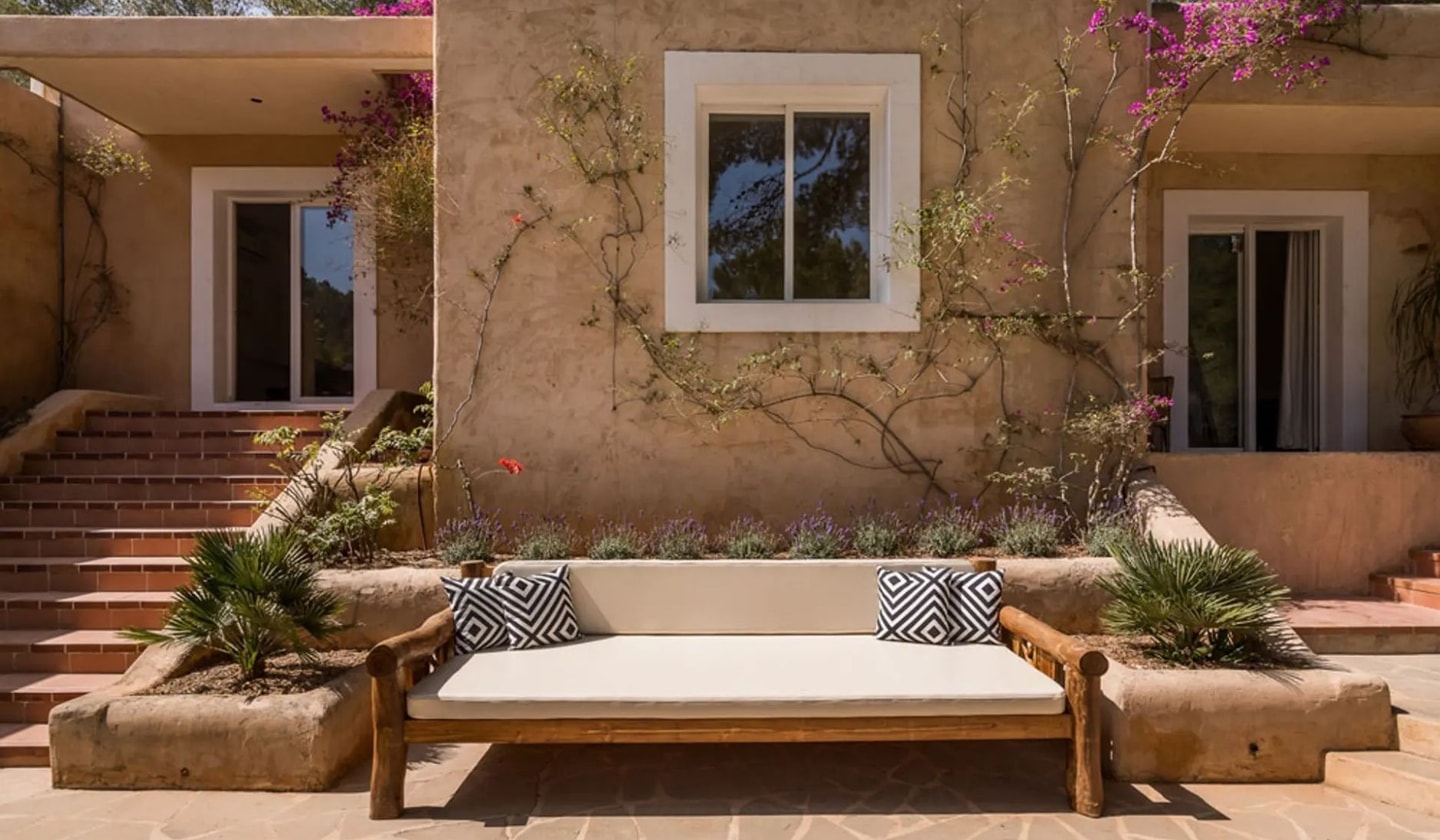 Can Vissa occupies a hillside position on one of Ibiza's highest peaks, halfway between Ibiza Town and Sant Josep. This single-storey villa offers both privacy and proximity, with the island's most celebrated venues all within a fifteen-minute drive. The property sits surrounded by countryside where wild orchids and rosemary bloom each spring, creating a natural haven that feels worlds away from the energy of the clubs below.