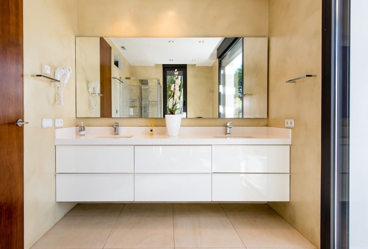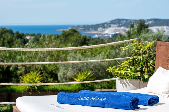 Cana Manxa sits quietly on its hillside perch, where the Mediterranean stretches out below and sunsets paint the sky in the evening. This modern villa offers a peaceful retreat just fifteen minutes from the popular beaches of Cala Tarida, Cala Bassa and Cala Conta. The property reveals itself through well-maintained gardens that frame the approach, setting the tone for what lies within.