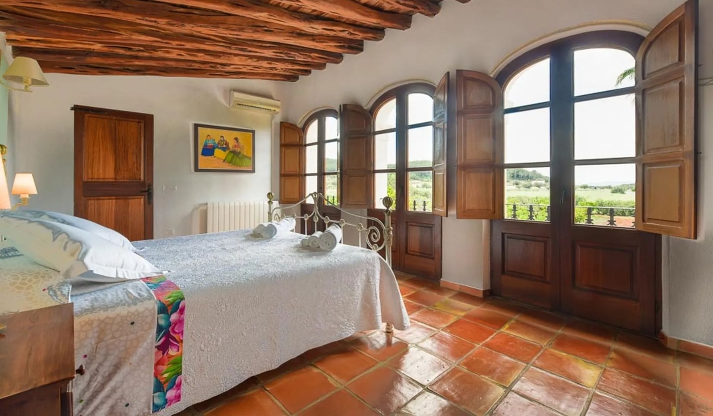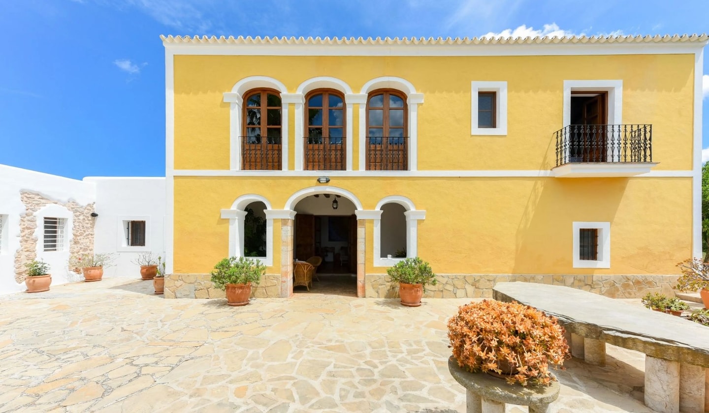A generations-old finca with whitewashed arches and yellow walls, just minutes from San Miguel village. Seven bedrooms spread across two floors, with a tropical garden and covered outdoor kitchen perfect for long Ibizan lunches.