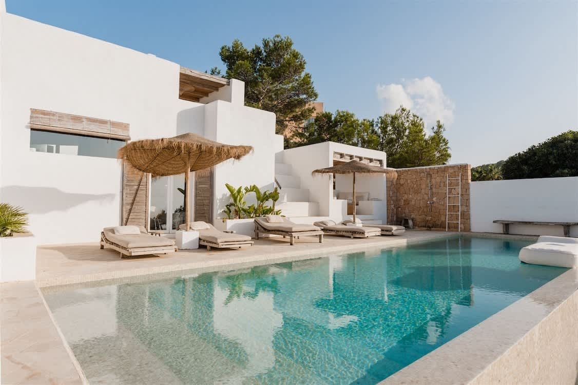 Cala Vadella beach sits at your doorstep, its calm waters and waterfront restaurants making it ideal for families. The protected cove offers excellent snorkelling, while several other beaches lie within easy reach along the coast. Ibiza Town takes 25 minutes by car when you fancy exploring the island's historic centre. Days here move between pool, beach and terrace, with sunset views across the water providing the perfect end to each evening.