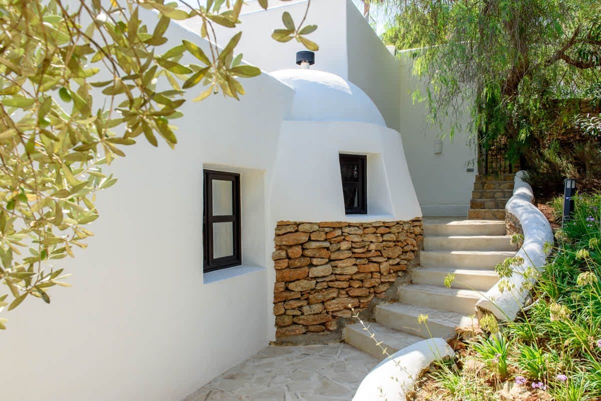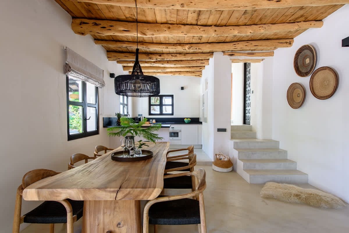 Casa Maha occupies a hillside position in Siesta, a village that climbs the mountain slopes adjacent to Santa Eulària. The house underwent recently a complete transformation, blending modern design with traditional Ibizan elements. Rocky Es Caló de S'alga beach lies just a kilometre away, while the sandy stretches of Cala Nova, Cala Llenya and Cala Llonga are all within a short drive.