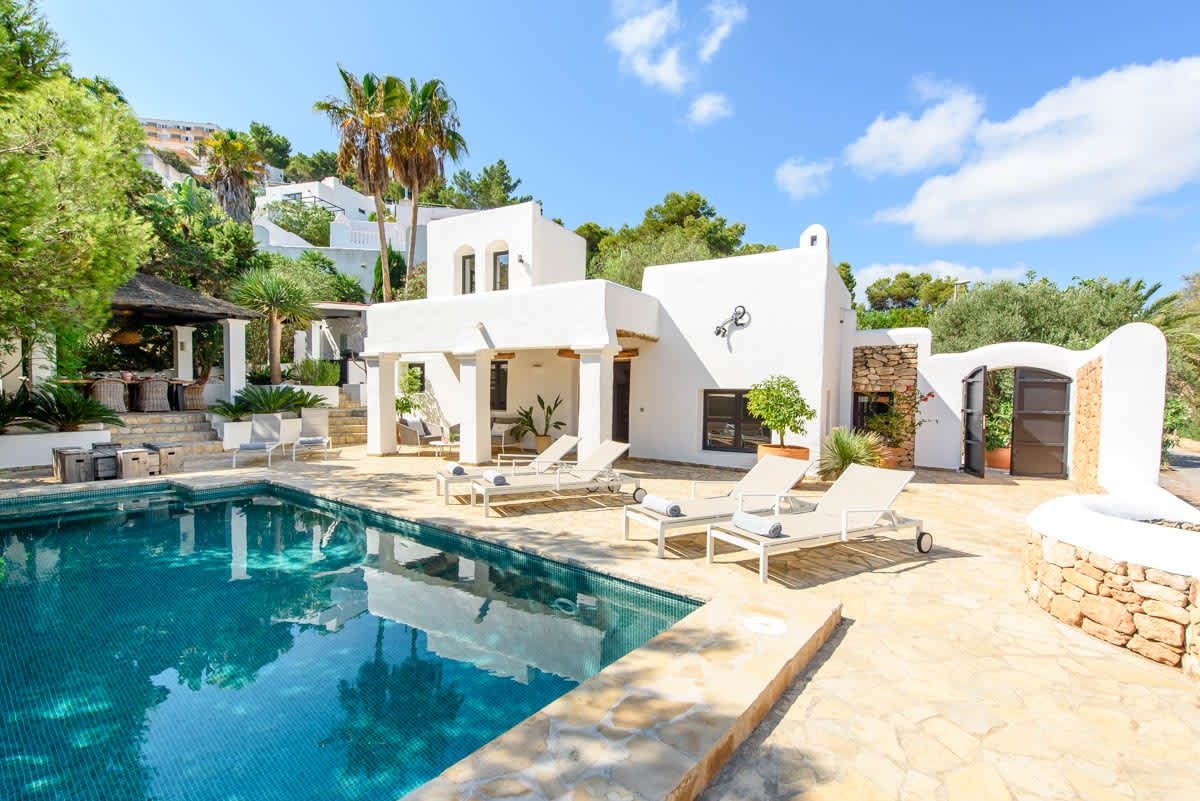 The location puts you within ten minutes of Las Dalias and Punta Arabi hippy markets, perfect for morning browsing before returning for poolside afternoons. The nearby beaches offer variety, from rocky coves for snorkelling to sandy bays for swimming. Santa Eulària provides restaurants and shops just moments away, while the house itself offers peaceful seclusion on its hillside perch. Evenings might find you grilling at the outdoor kitchen as the light softens across the valley below.