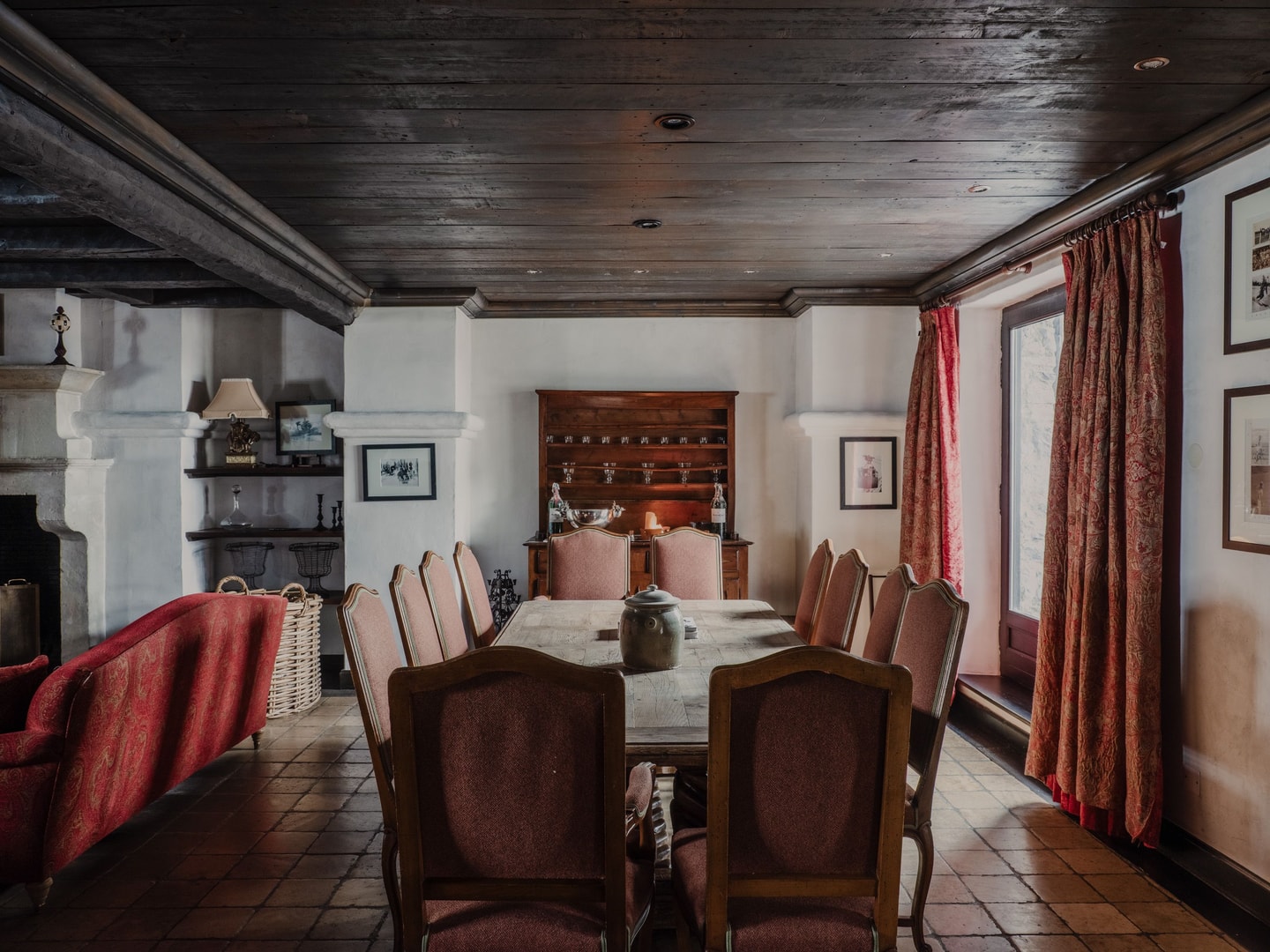 The living spaces carry the comfortable charm of traditional mountain homes, with dated interiors that create an unexpectedly cosy atmosphere. A substantial kitchen anchors the main floor, equipped with dishwasher, oven and freezer for preparing proper meals. The generous living room centres around a fireplace, its ample seating arranged for post-ski gatherings. Mountain views frame several rooms, bringing the beautiful alpine landscape indoors.