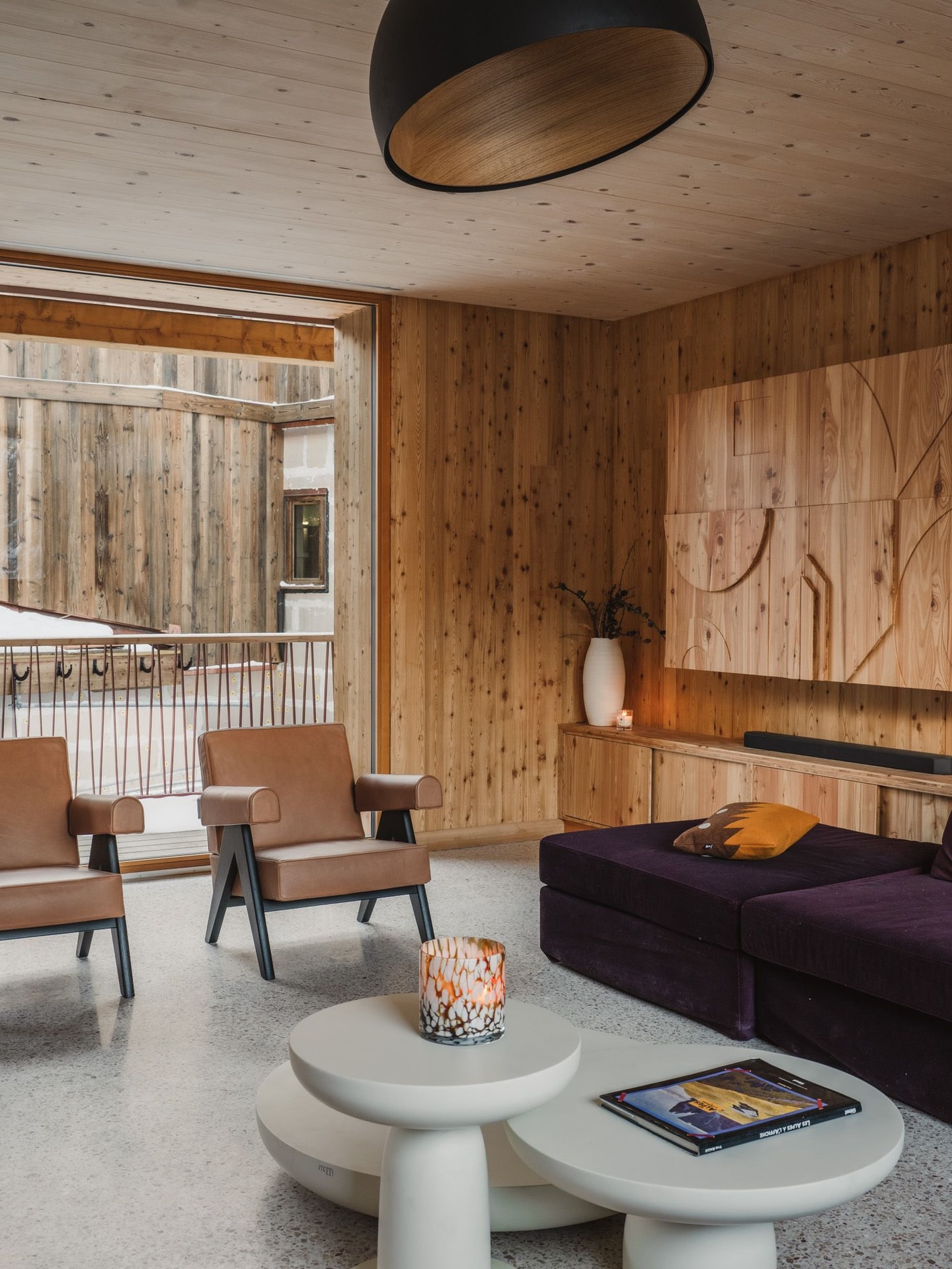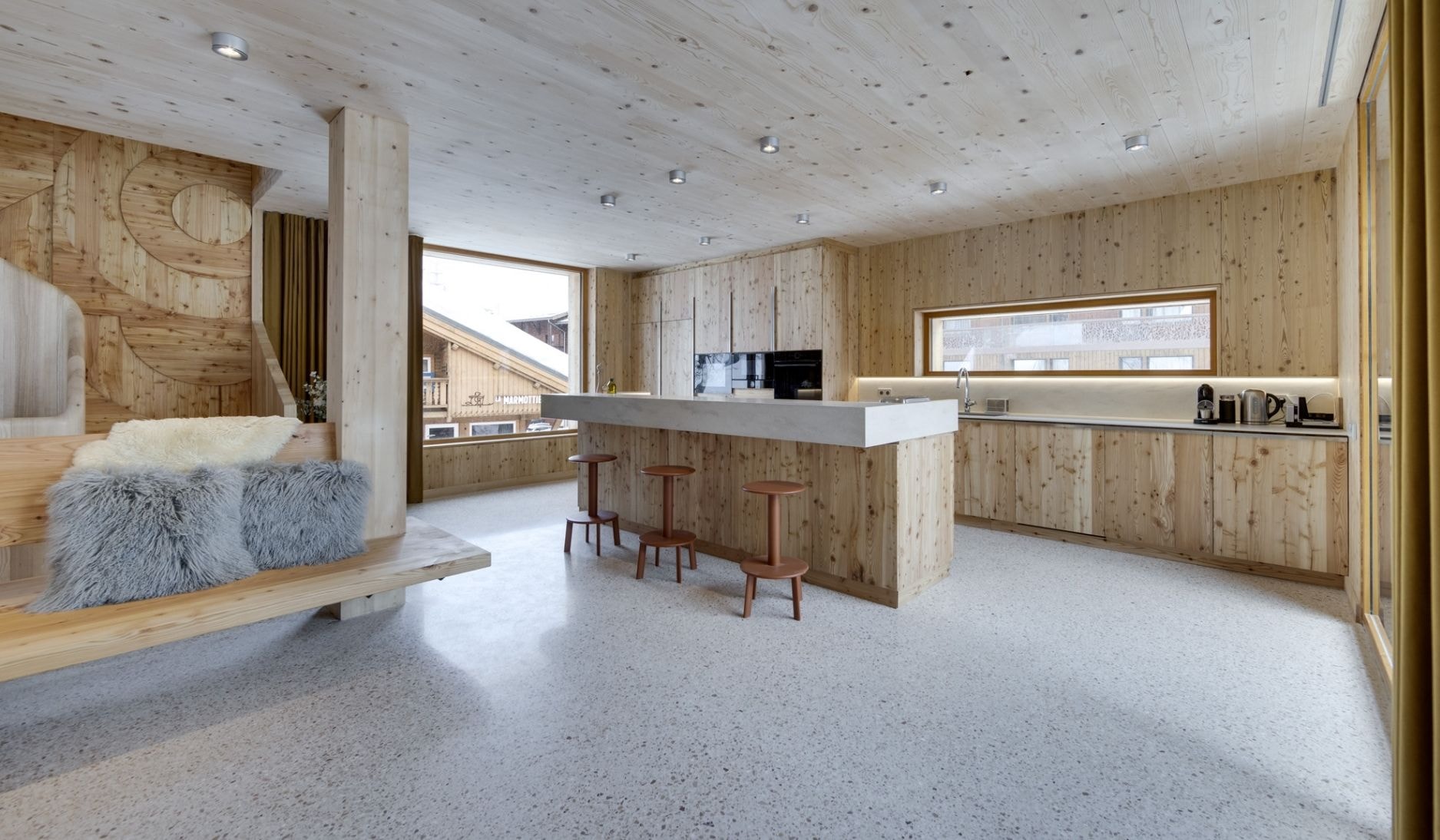A newly completed architect-designed chalet in Val d'Isère, spread across four floors with private spa facilities. Natural stone, marbled bathrooms and warm wood create an inviting mountain retreat.