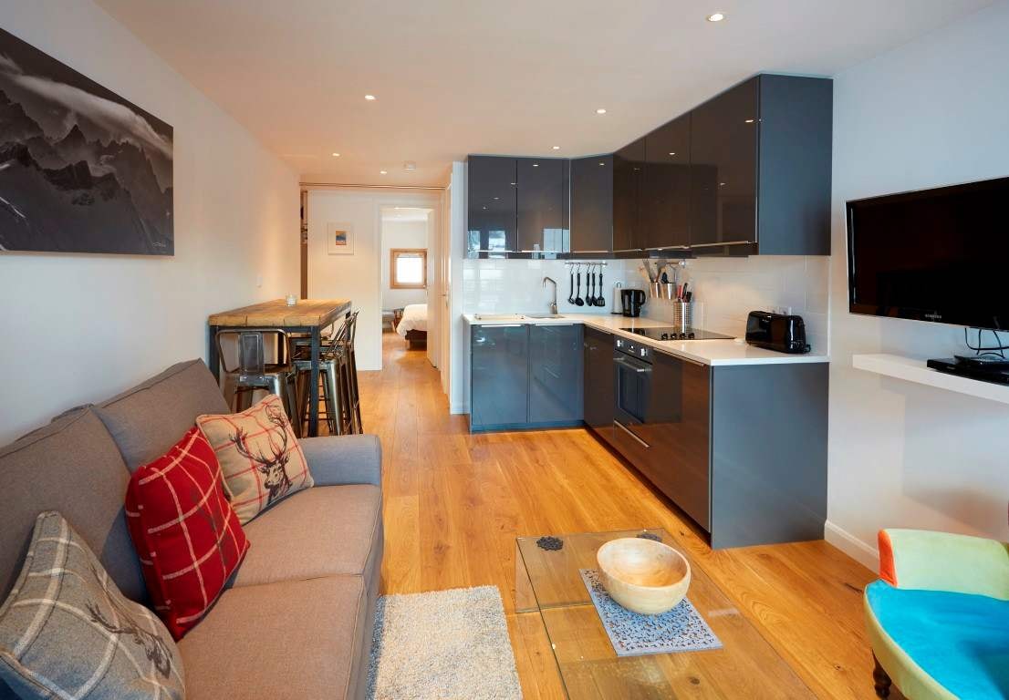 Your days here follow Val d'Isère's rhythm, with the village centre just moments away for morning provisions or evening wandering. Return to unwind in the jacuzzi while others prepare dinner in the well-equipped kitchen, or retreat to the sauna as snow falls outside. The balcony offers mountain views for quieter moments, while the open-plan design means the group stays connected even when activities diverge.
