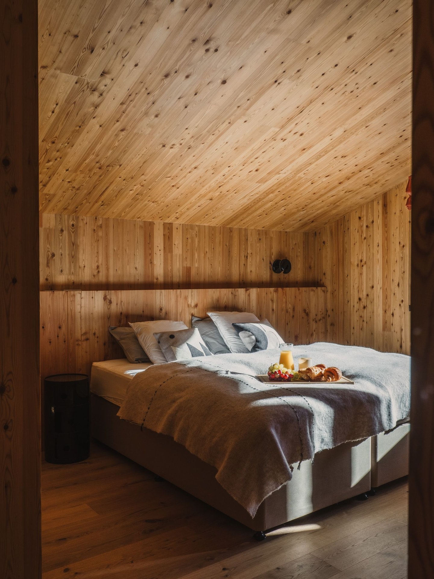 The ground floor holds two en-suite bedrooms, the upper level three, each finished with the same attention to detail found throughout. Marbled bathrooms complement the wood and stone palette, while ski boot warmers ensure morning departures happen in comfort. The chalet includes both garage parking for two vehicles and outdoor space for four more, plus those essential extras like washing machine, dryer that make longer stays run smoothly.