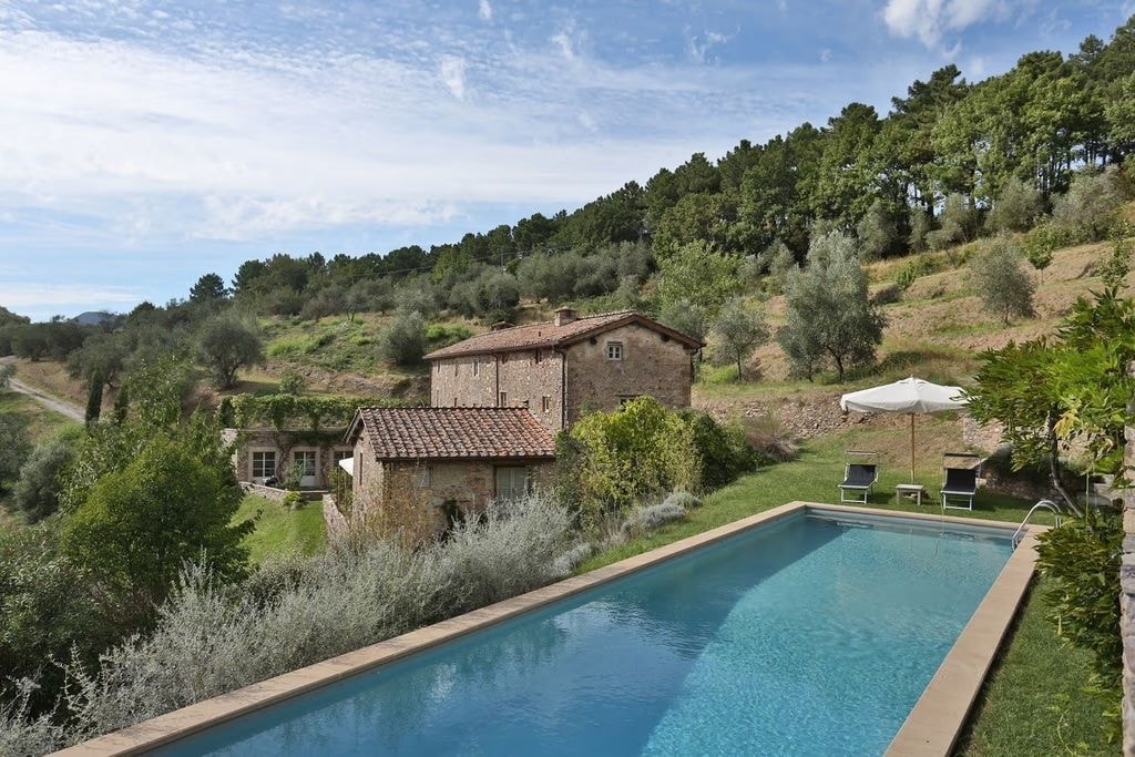 A restored stone villa in the hills between Lucca and Pisa, offering panoramic valley views and an ozone swimming pool. Five en-suite bedrooms blend Tuscan farmhouse character with modern comfort.