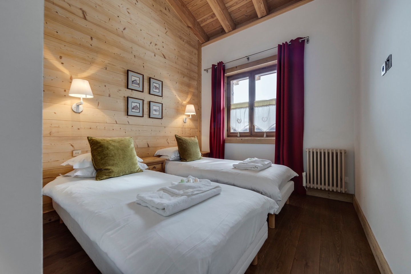 High above Val d’Isère’s lively centre, Les Choucas Loft spans the top two floors of its building, offering vaulted ceilings and a modern wood-burning fireplace that sets it apart from its neighbours. The location strikes a rare balance: you're steps from shops and restaurants, yet the building sits far enough back from the high street to ensure peaceful nights.