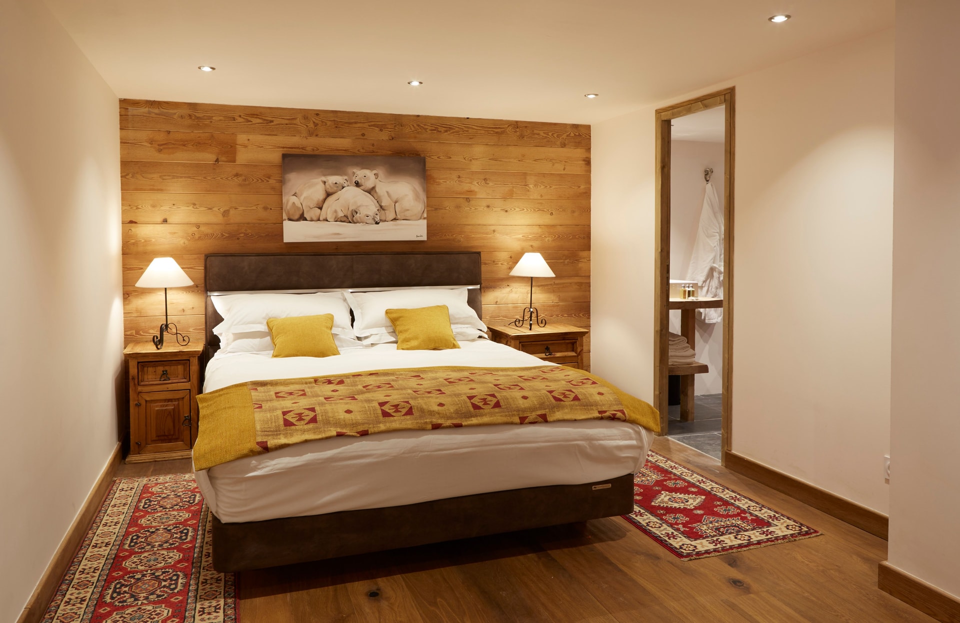 - King bed tucked perfectly into the wall space