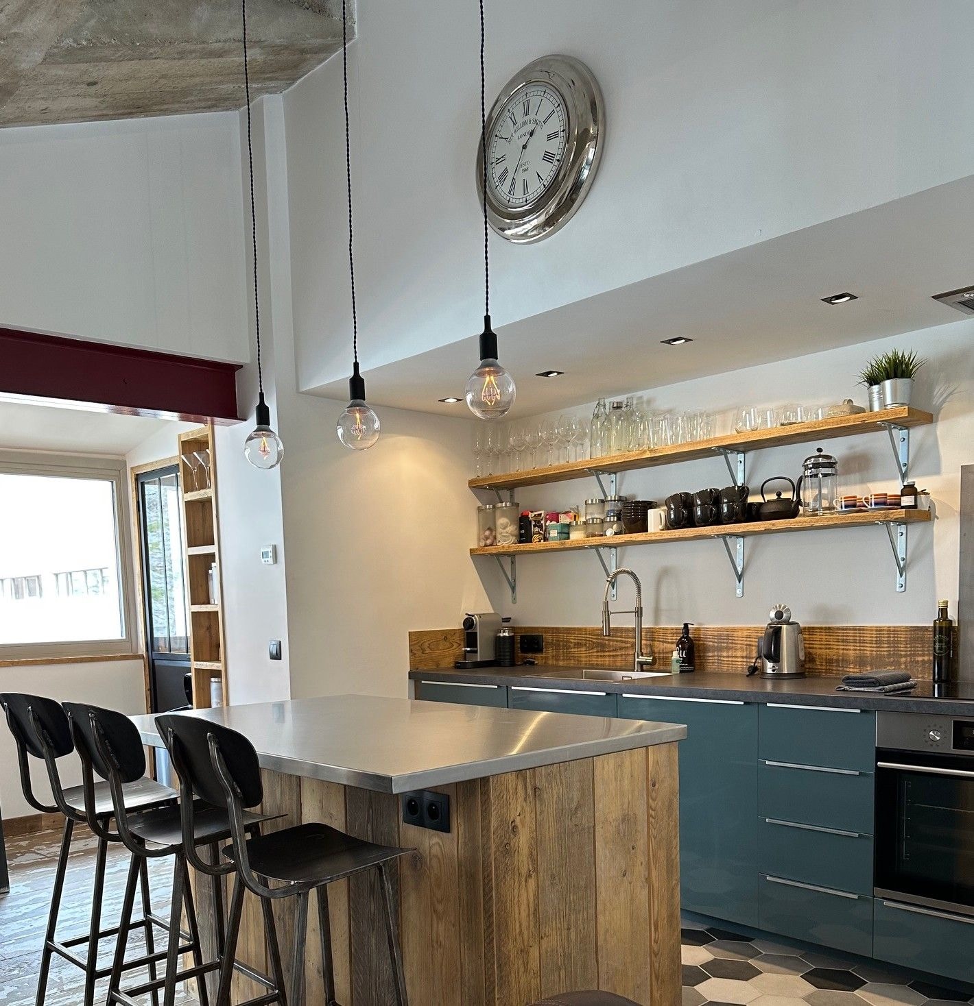 Double-Height Ceilings with Industrial Chic design
