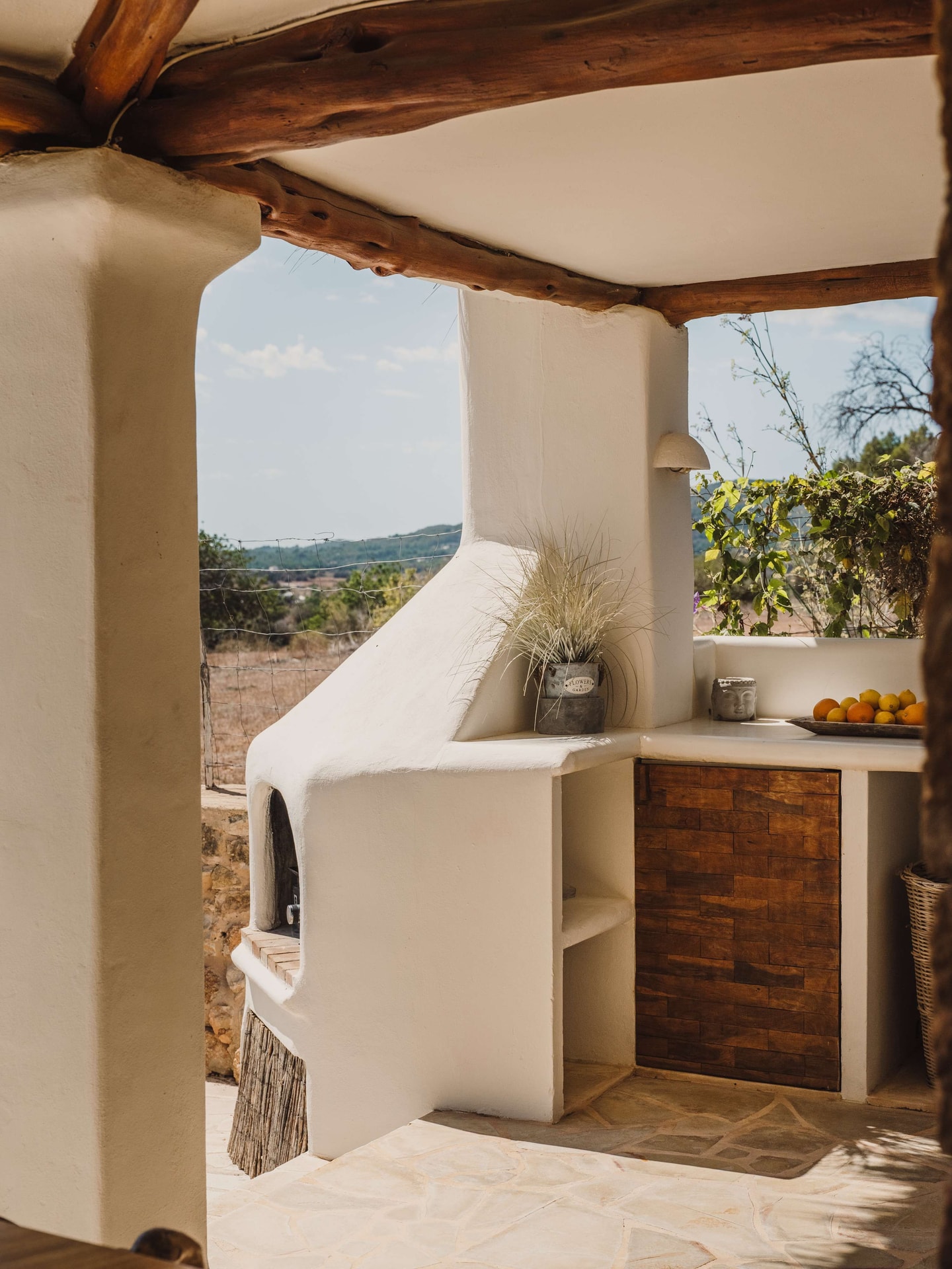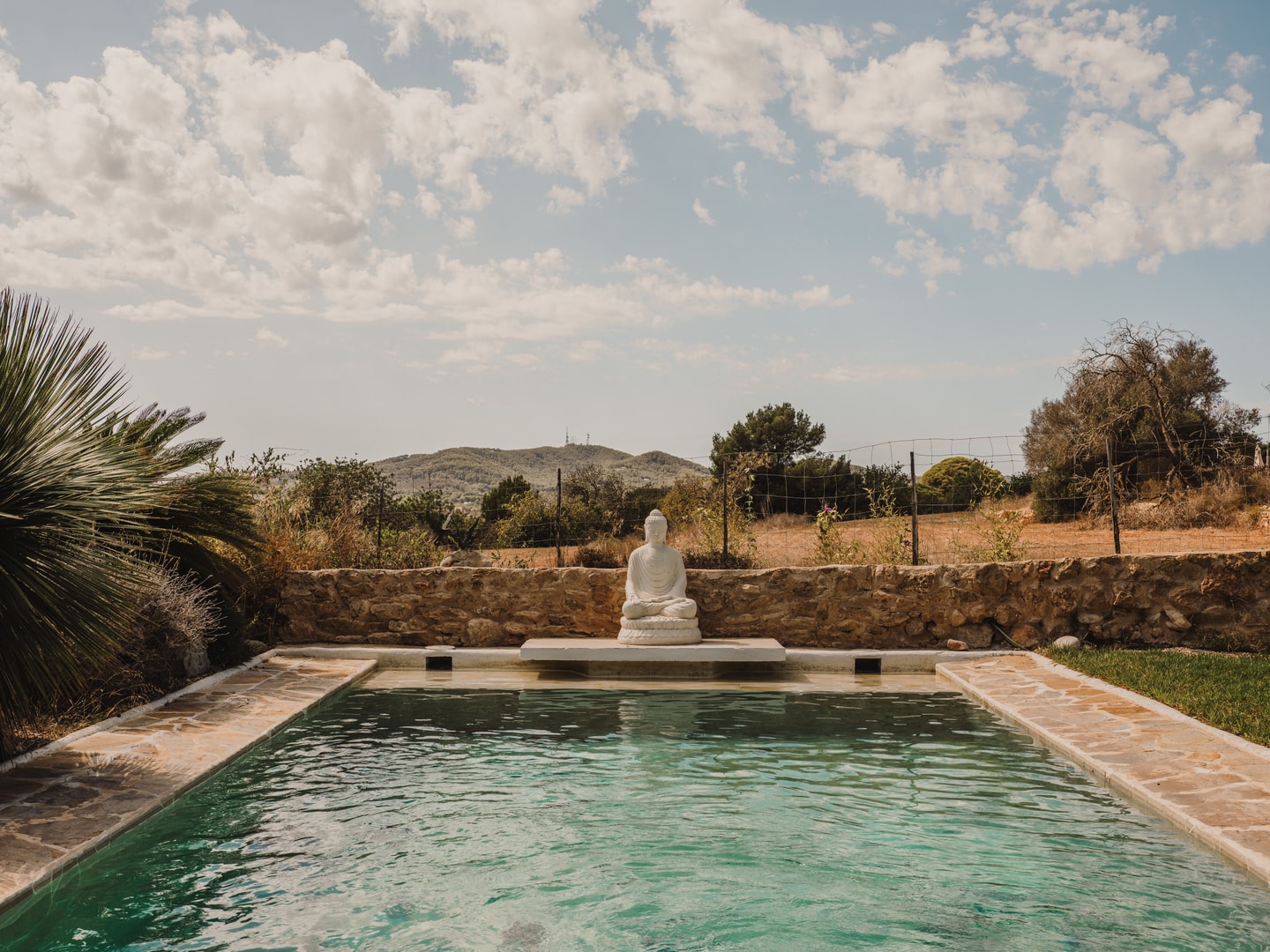 Days here balance peaceful mornings by the pool with easy exploration of eastern Ibiza. The famous Las Dalias hippy market lies less than ten minutes away, perfect for browsing local crafts and staying for the evening festivities. The beaches of Cala Llenya and Cala Nova offer pristine sand and clear waters nearby. As evening approaches, the western sky puts on quite a show, with sunset views stretching across open fields from your private terrace.