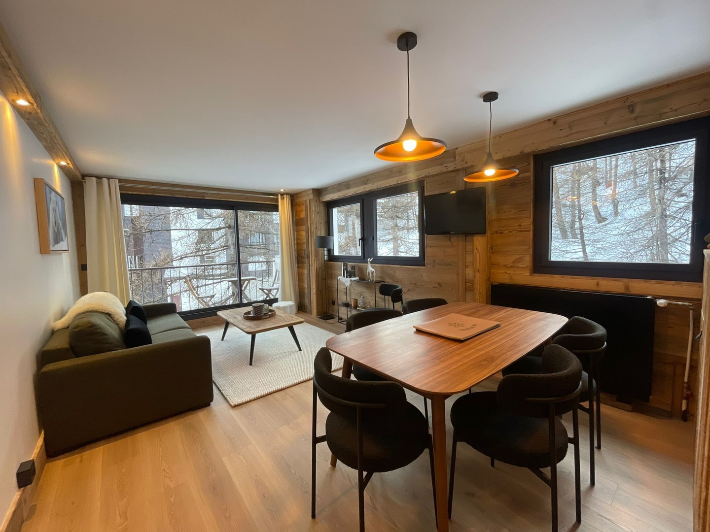 Recently renovated apartment in the heart of Val d'Isère, just minutes from the Bellevarde cable car and Solaise lift. A perfect blend of old and new wood creates a cosy twist on traditional Savoyard style.