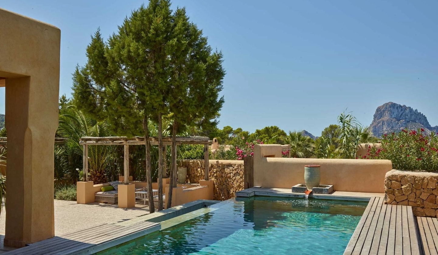A peaceful retreat in Ibiza where authentic Balearic living takes center stage. Three bedrooms spread across the main house and garden guest house frame views of Es Vedrà from every terrace.