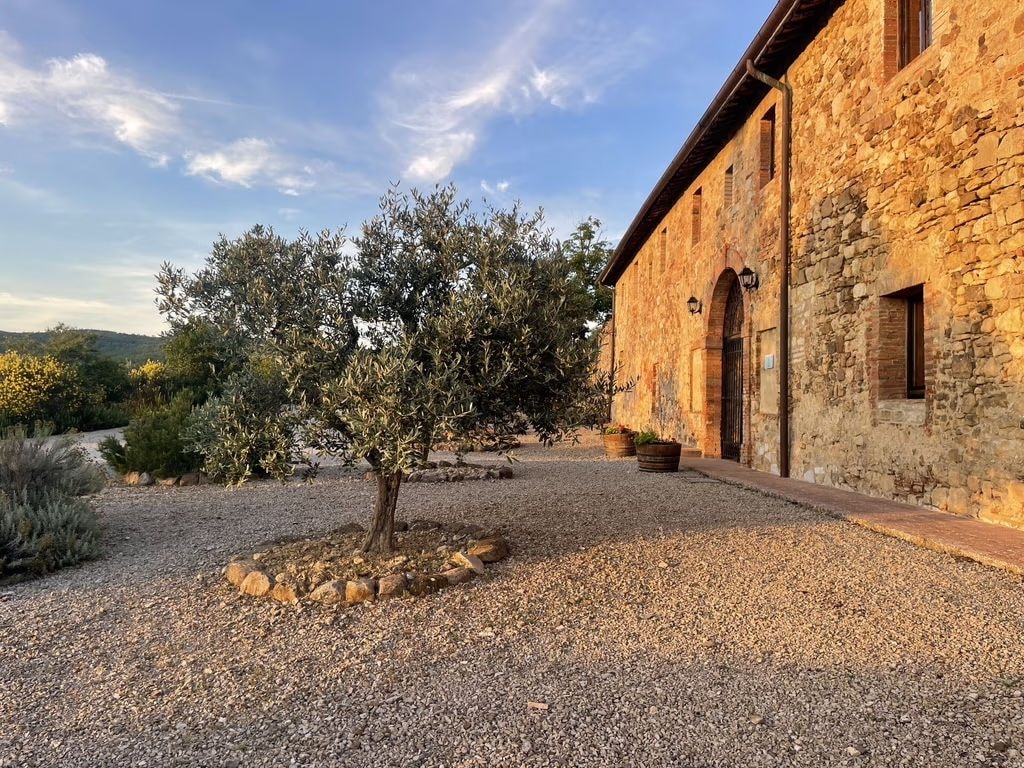 September visits coincide with the grape harvest on the estate, where the owners lead tours through historic wine cellars. Siena lies close enough for spontaneous dinner plans, while Florence, Monteriggioni and the Chianti villages make easy day trips. Mornings might begin with coffee in the courtyard, afternoons by the pool, and evenings watching the light change across those endless vineyard views.