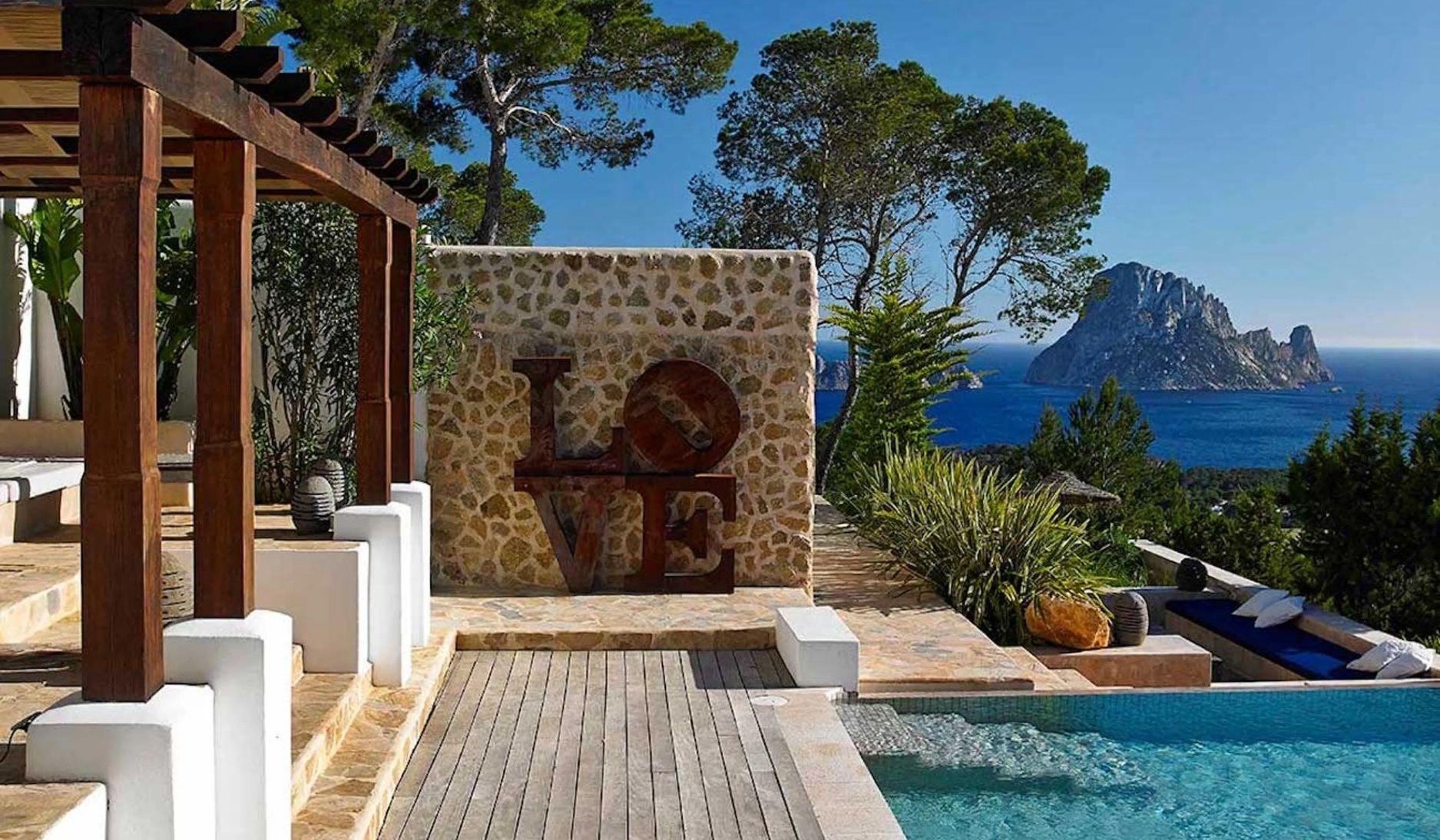 High above Ibiza's south-west coast, La Plumeria claims a privileged position 200 metres above the Mediterranean. This hilltop retreat offers direct views of Es Vedrà, that magnetic limestone island rising from the sea. Designed by Rolph Blackstad and styled by Alberto Cortes and Yvonne Hulst, the property brings together influences from Marrakech, Bali and Italy while maintaining an authentic Balearic character throughout its 500 square metres of living space.