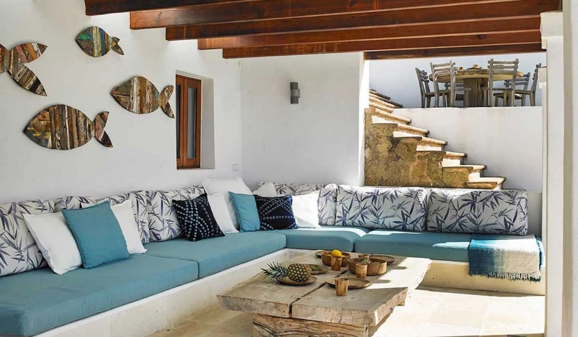 From this elevated position, the coastline stretches in both directions, with secret coves and beaches waiting below. The location offers both seclusion and accessibility, with local restaurants and markets within easy reach. Evenings bring spectacular sunsets over the water, best enjoyed from the pool deck with the day's last light painting Es Vedrà gold. The outdoor focus of La Plumeria suits the Ibiza climate perfectly, with multiple terraces and lounging areas making the most of warm days and balmy nights.