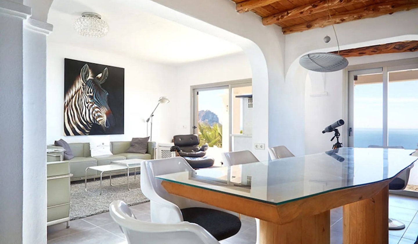 La Primavera occupies a privileged position within the natural park of Cala d'Hort, where the iconic Es Vedrà rises from the Mediterranean. This thoughtfully designed property comprises a main house and two independent apartments, each with its own character. Just five minutes from the beach and seven kilometres from San José, it offers both seclusion and accessibility.