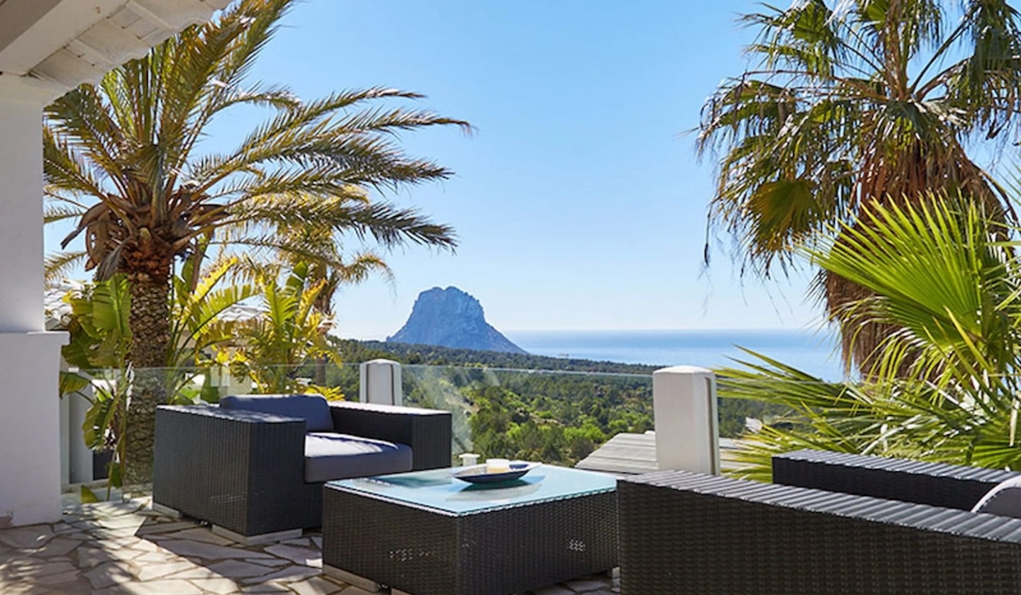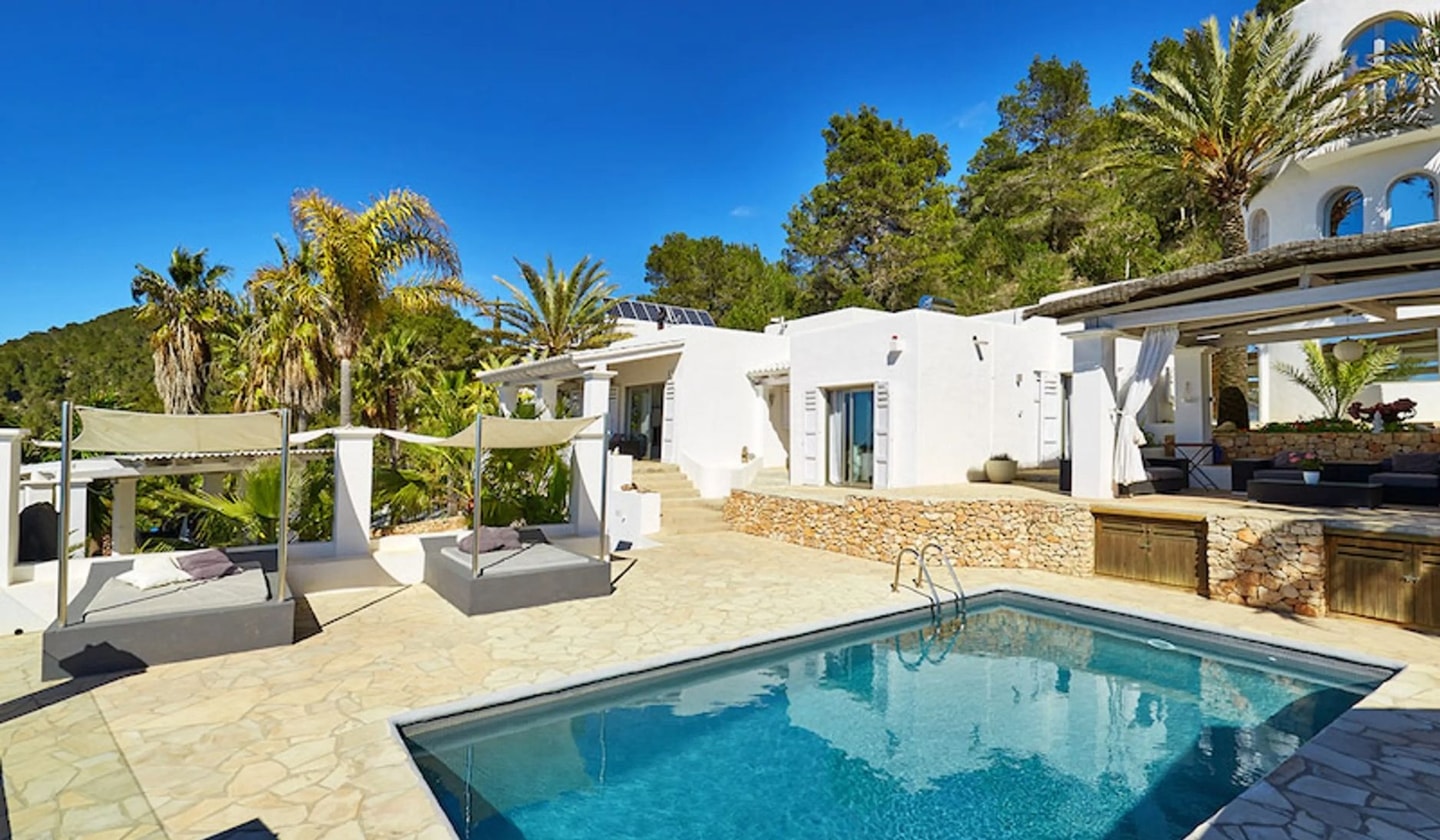 Well-maintained gardens extend across multiple furnished terraces, with two private pools (8x4 and 12x4 metres) providing ample space for swimming and lounging. The panoramic sea views stretch towards Es Vedrà, particularly spectacular at sunset. The final approach involves a steep gravel track, something to consider when choosing your vehicle. Ibiza Town lies 30 kilometres away when you fancy exploring further afield.