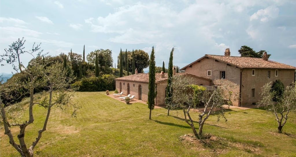 A few kilometres from Montalcino, this architect-designed villa pairs Tuscan tradition with personal flair. Stone farmhouse and guesthouse spread across wine country, with a pool overlooking Val d'Orcia.