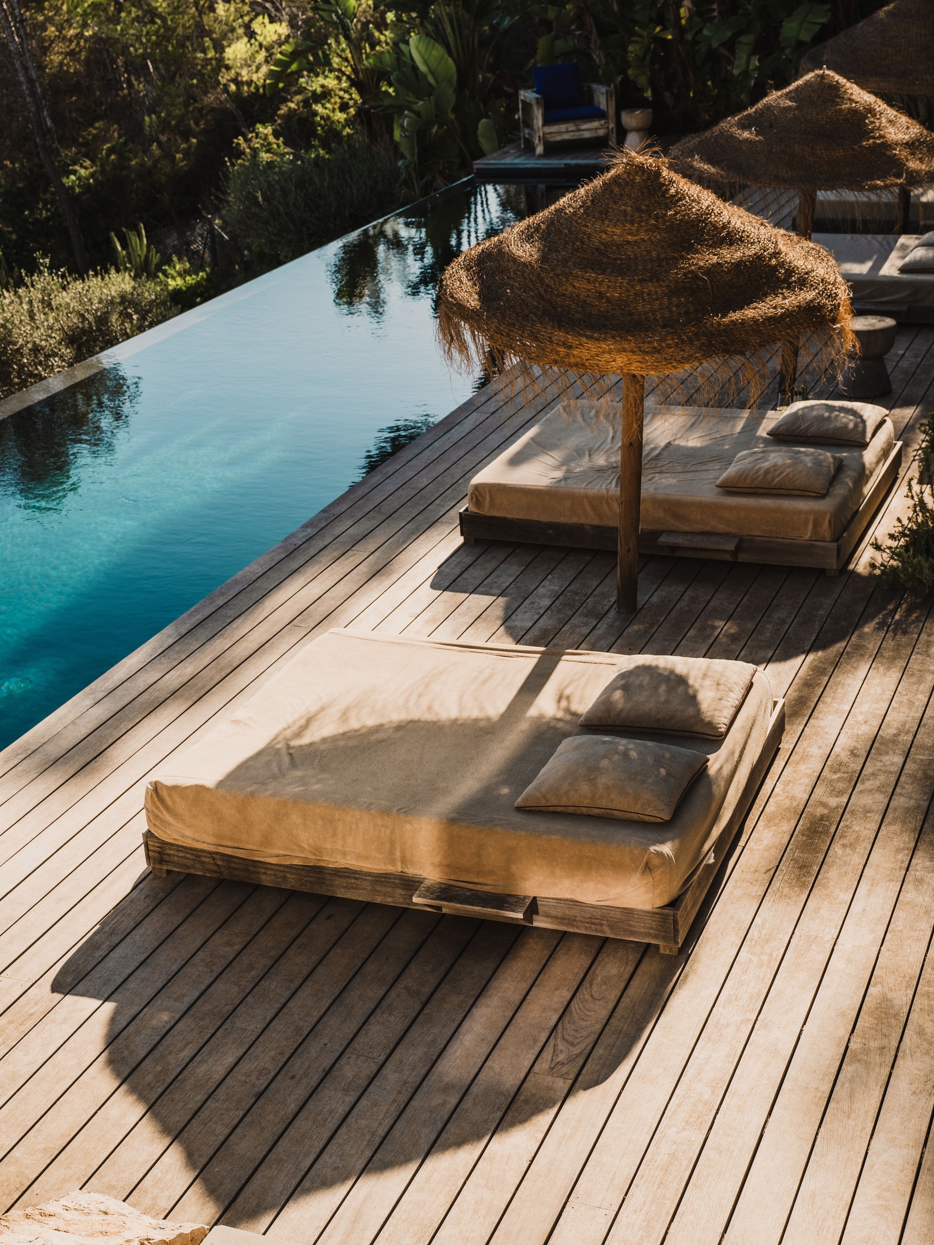 The 18-metre infinity pool commands views that define this hilltop position. Olive trees dot the garden, their silver-green leaves catching the breeze. Several beaches lie within easy reach, while the seclusion means genuine quiet. Mornings might start with coffee on the terrace, afternoons by the pool, evenings watching the light change across the water from this peaceful vantage point above southern Ibiza.