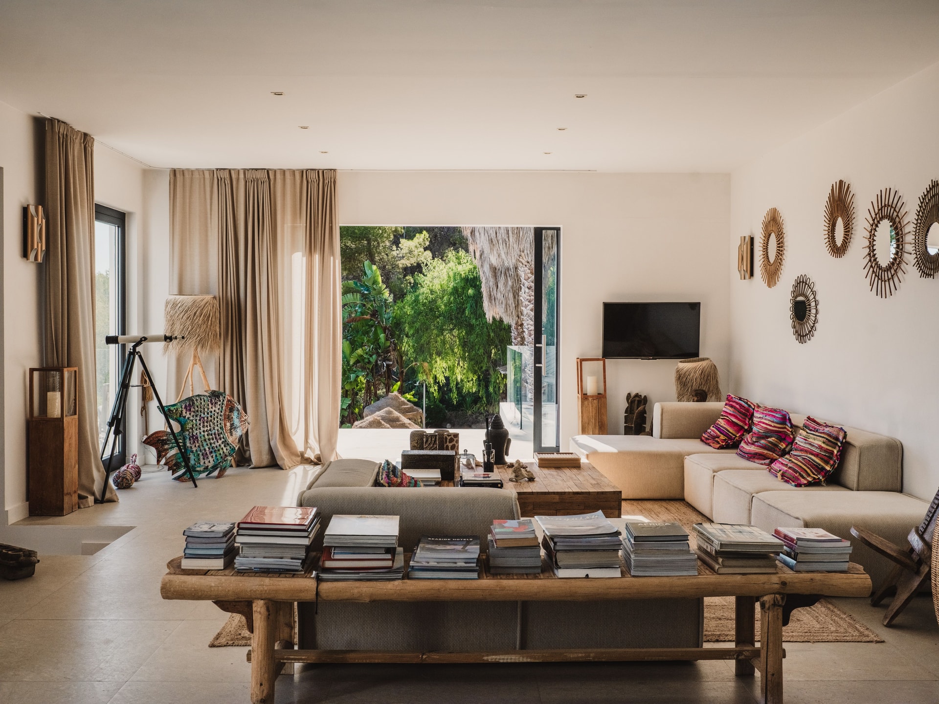 A minimalist villa tucked into the hills above Es Cubells, where pine-scented privacy meets sweeping views of Cap des Falco and the Mediterranean. Five bedrooms spread across three levels, each with its own perspective.