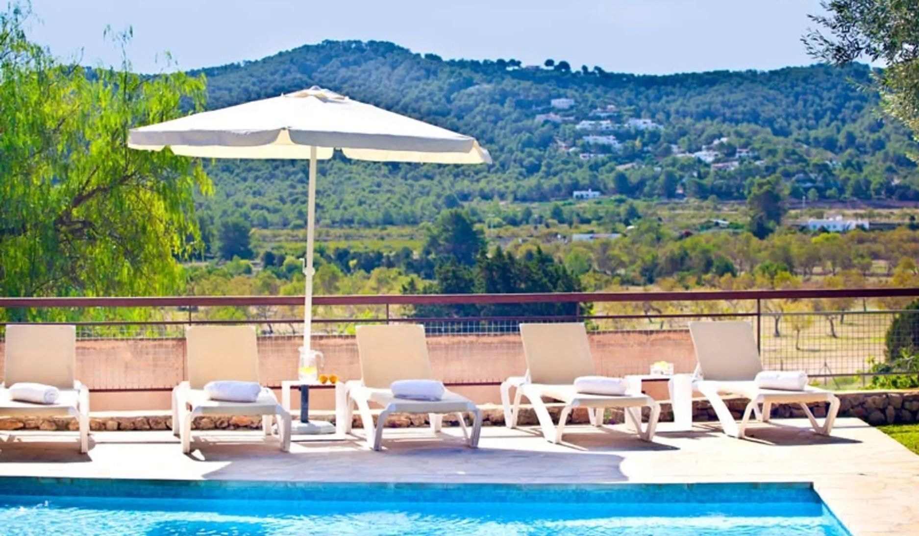 A tiered finca with panoramic bay views, Rafael spreads across multiple levels with separate bungalows tucked between almond trees. Just minutes from three of Ibiza's west coast beaches.