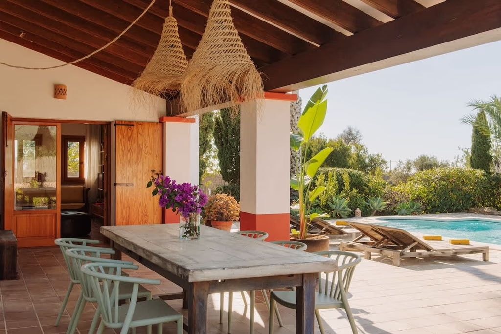 A comfortable family villa set among peaceful farmland, perfectly positioned between Ibiza Town and the island's southern beaches. Spanish charm meets practical comfort with generous outdoor space.