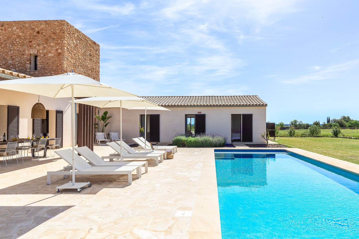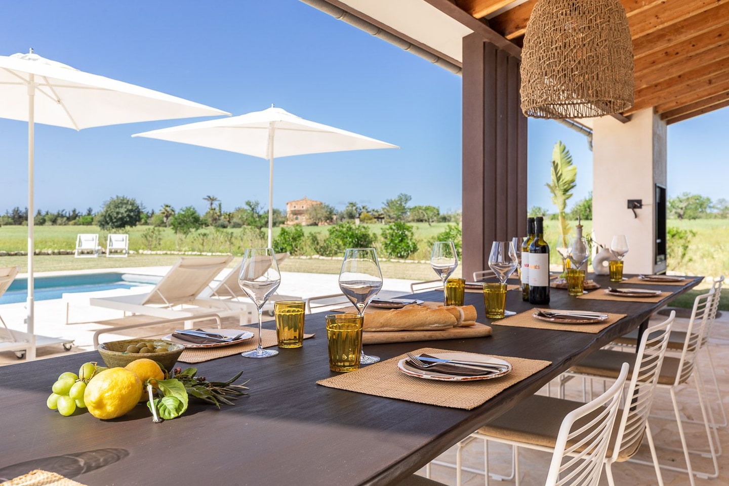 Country chic meets Tuscan warmth at Reunió, where rolling countryside views stretch endlessly from your private terrace. This thoughtfully designed villa centres around an inviting swimming pool and impressive open-air kitchen, complete with barbecue facilities for those long Mallorcan evenings. The property has been styled by a renowned Siegen interior designer, bringing colourful charm and authentic island character to every corner.