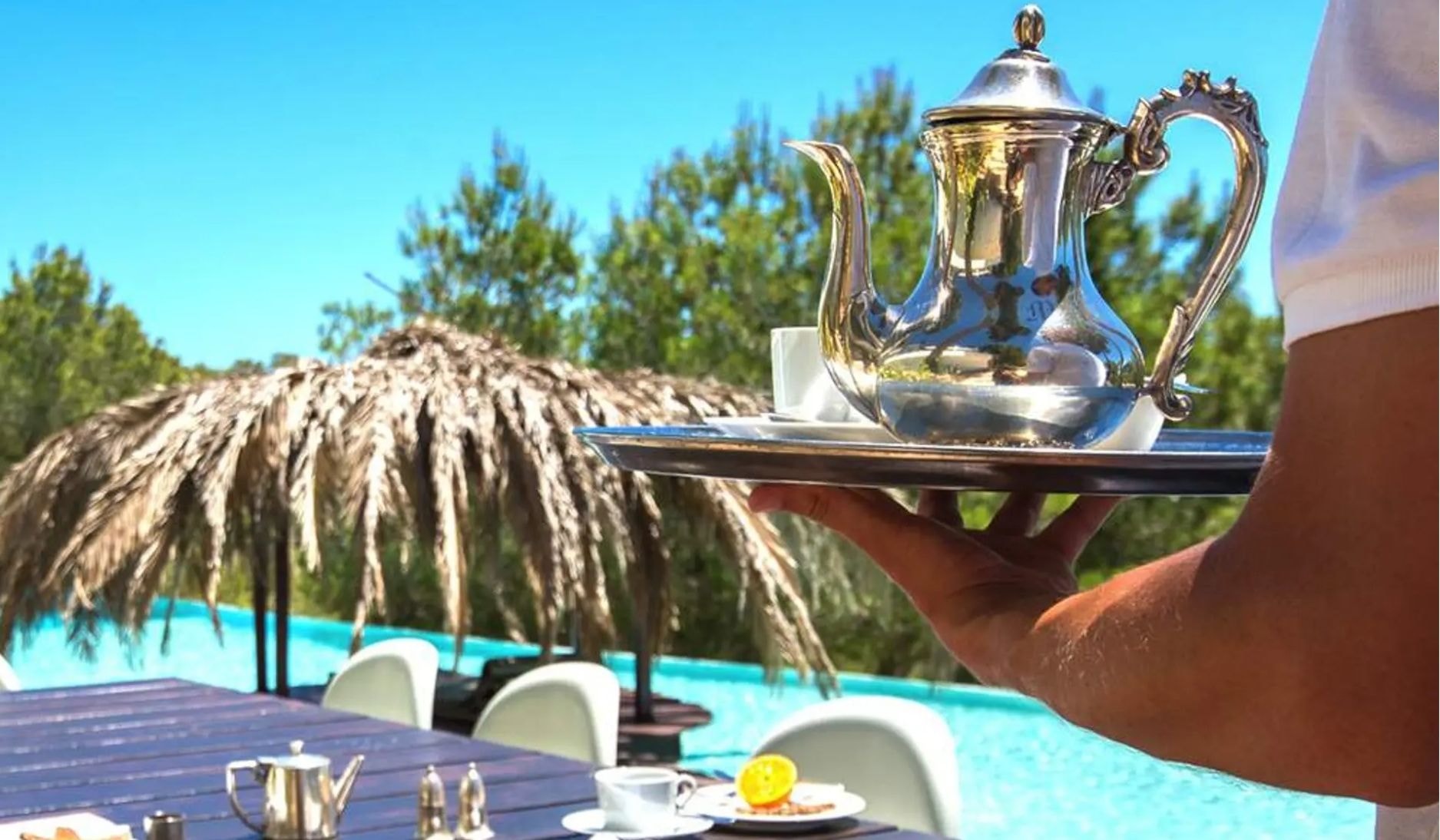 Eight bedrooms are distributed throughout the property, each thoughtfully positioned to maximise privacy and views. The interiors showcase furniture and lighting designed specifically for this villa, creating a cohesive aesthetic throughout. The main living areas include a modern kitchen equipped with dishwasher, oven, microwave and both Nespresso and espresso machines, while an outside kitchen extends the cooking options onto the terraces.