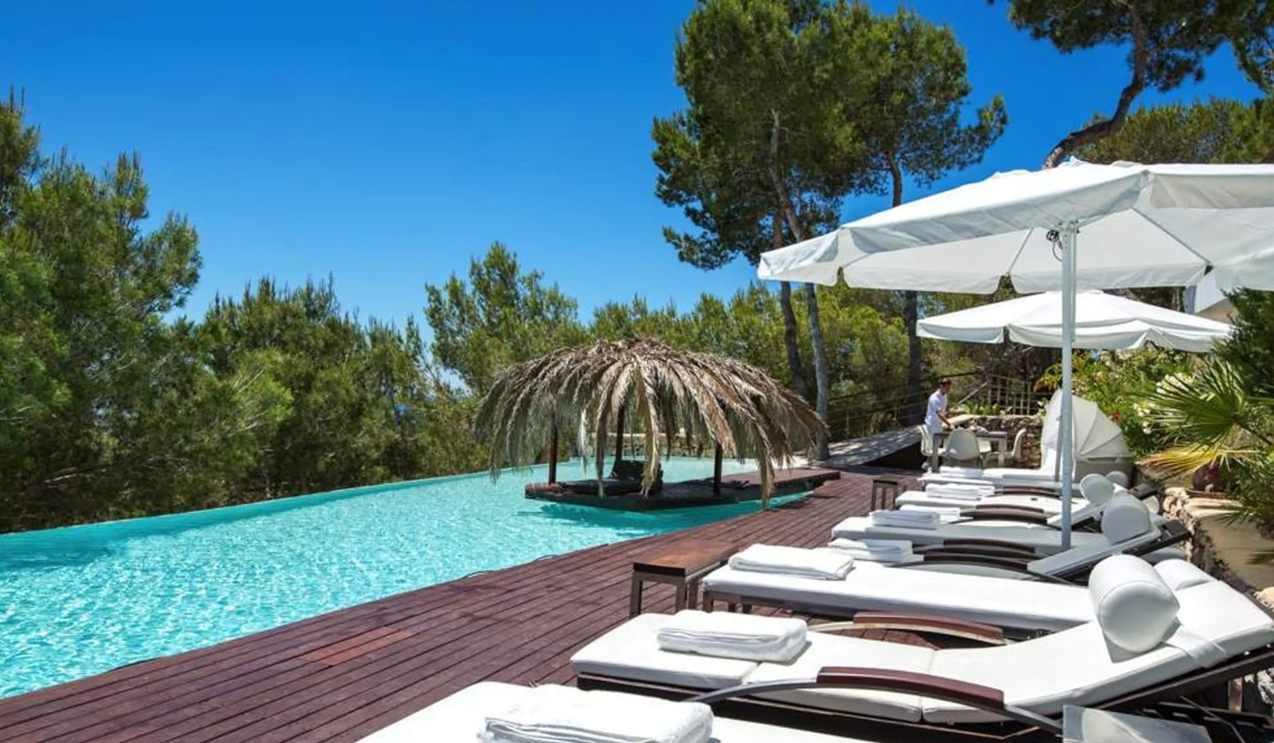 An architectural marvel in San José with sweeping 180-degree views across Ibiza's old town, Salinas beaches and Formentera. Eight bedrooms spread across 550m² of refined living space.