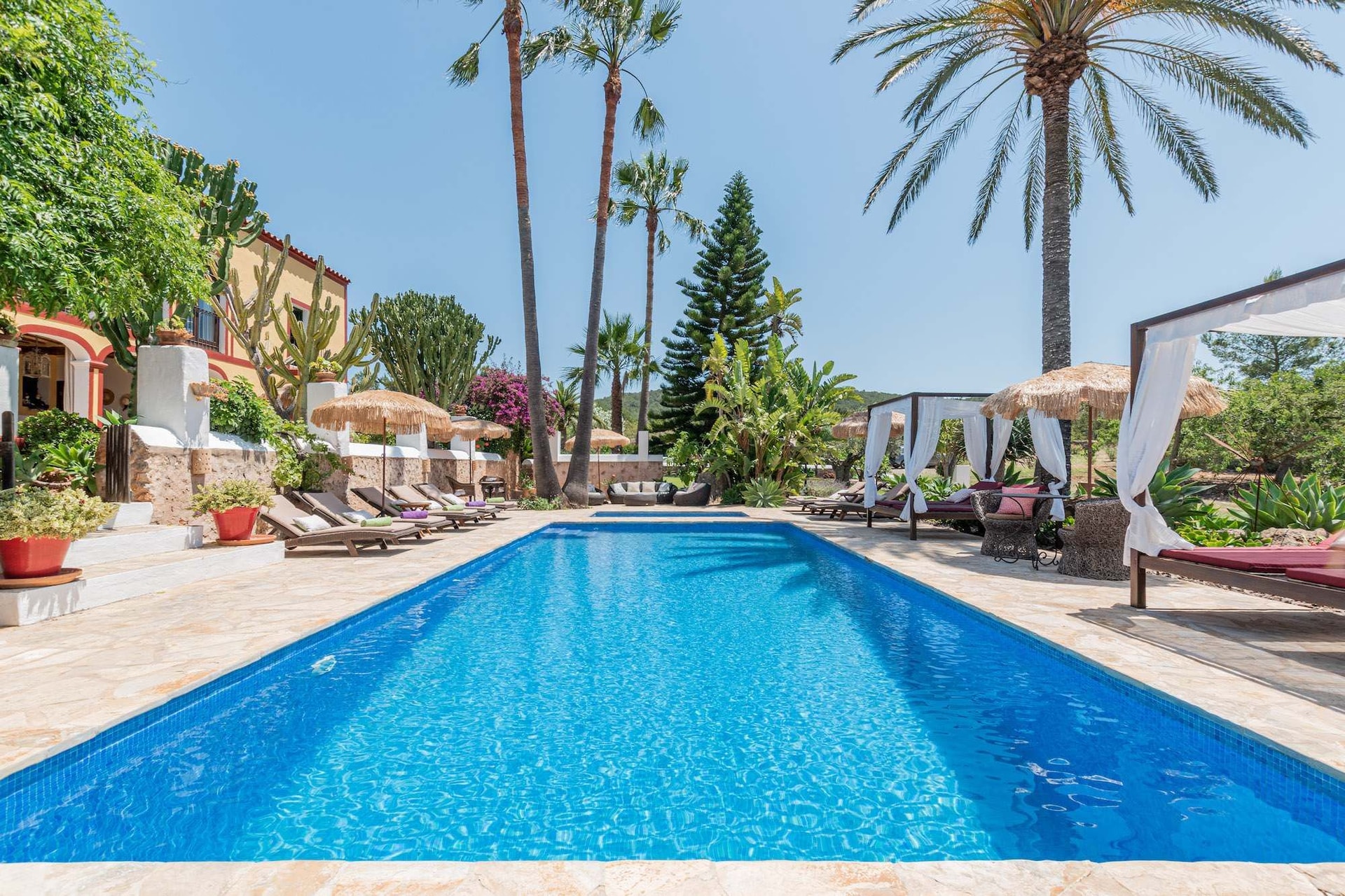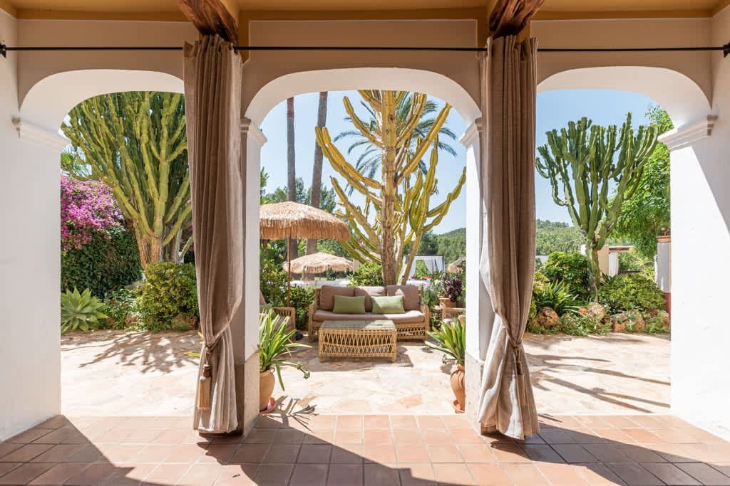 A house that's been cherished by the same family since 1485 doesn't need much introduction. Red painted arches frame yellow walls in this restored country estate, where centuries of careful stewardship have preserved its authentic character. Just two minutes from San Miguel village, this property sits at the heart of northern Ibiza, with Santa Eulària and Benirràs beach both within a ten-minute drive.