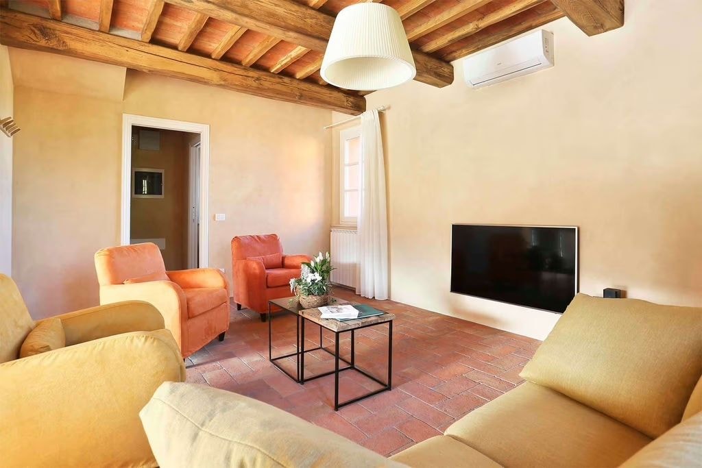 The location opens up all of central Tuscany without the usual travel times. Florence, Pisa, and San Gimignano all lie within easy reach for day trips, while a local sports centre just a short walk away offers tennis courts. Several restaurants dot the nearby area, and the owners, who manage properties throughout the region, can point you towards their favourites. For larger gatherings, Il Grappolo next door sleeps nine more guests and can be rented in combination.