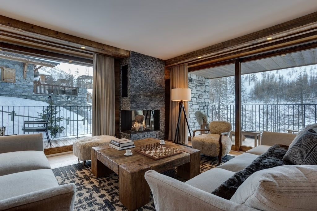 Your days here balance mountain adventures with village life. Val d'Isère's centre lies a pleasant 10-15 minute walk away, or catch the bus from the stop directly opposite. Underground parking provides one space, while your ski locker with boot warmers waits conveniently on the same floor. After a day on the slopes, return to the warmth of your apartment where dinner preparations and fireside conversations await.