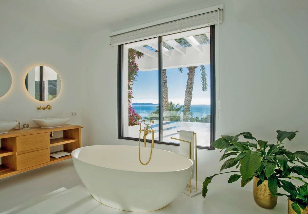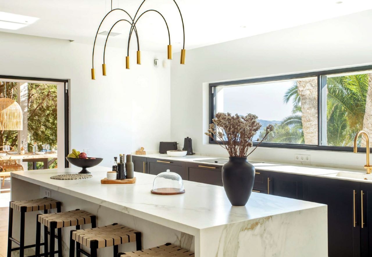Villa Lantana occupies a privileged position in Es Cubells, one of Ibiza's most sought-after coastal areas. This five-bedroom property sits within a private urbanisation, where Mediterranean views extend across the water from nearly every room. The recent renovation has brought a modern aesthetic to the villa, with clean lines and carefully chosen finishes throughout. Multiple terraces and outdoor spaces create natural gathering points for both quiet mornings and lively evenings with friends or family.