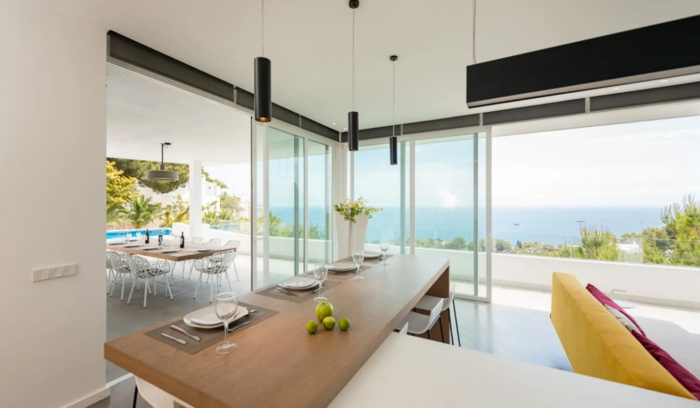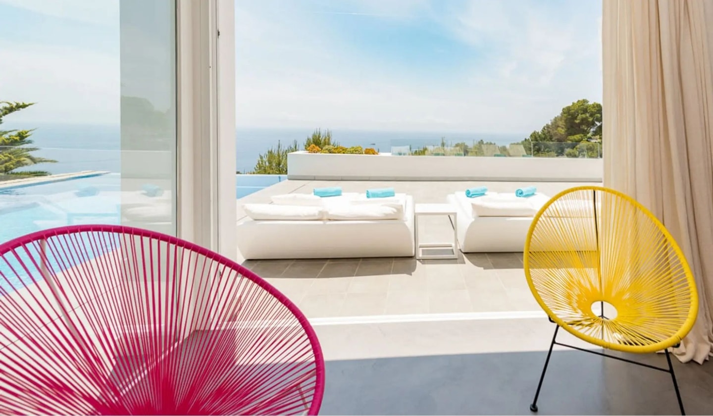 White Villa sits high above the eastern coastline of Ibiza, where ten guests can settle into a renovated retreat with infinity pool views stretching to Formentera. This modern residence in the gated Roca Llisa community offers both privacy and proximity, just fifteen minutes from Ibiza Town and port. The property's position captures morning light across the water and frames passing boats throughout the day.